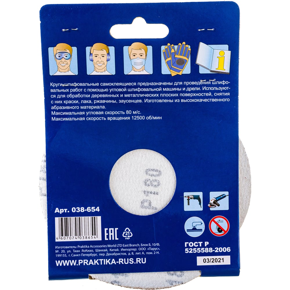 Круг шлифовальный на липкой основе (5 шт; 125 мм; Р180) ПРАКТИКА 038-654