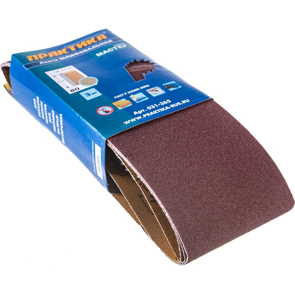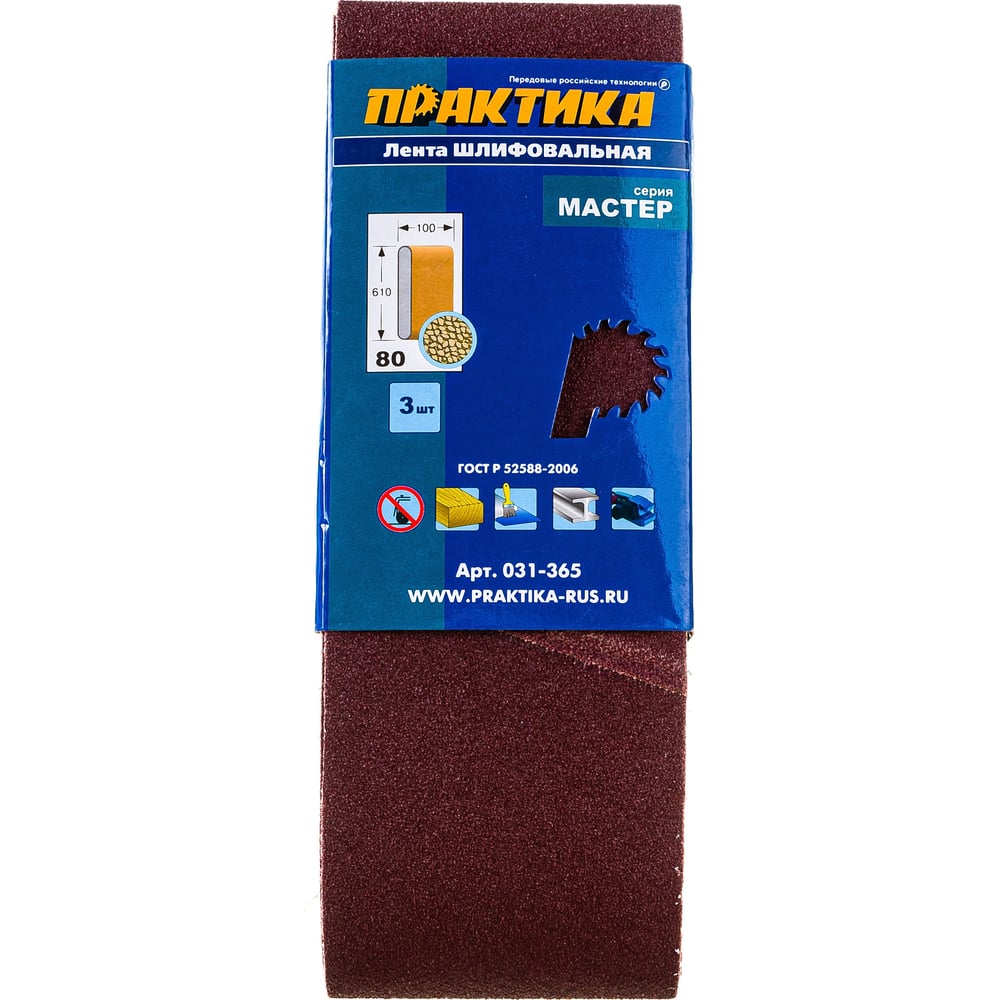 Лента шлифовальная (3 шт; 100х610 мм; P80) ПРАКТИКА 031-365