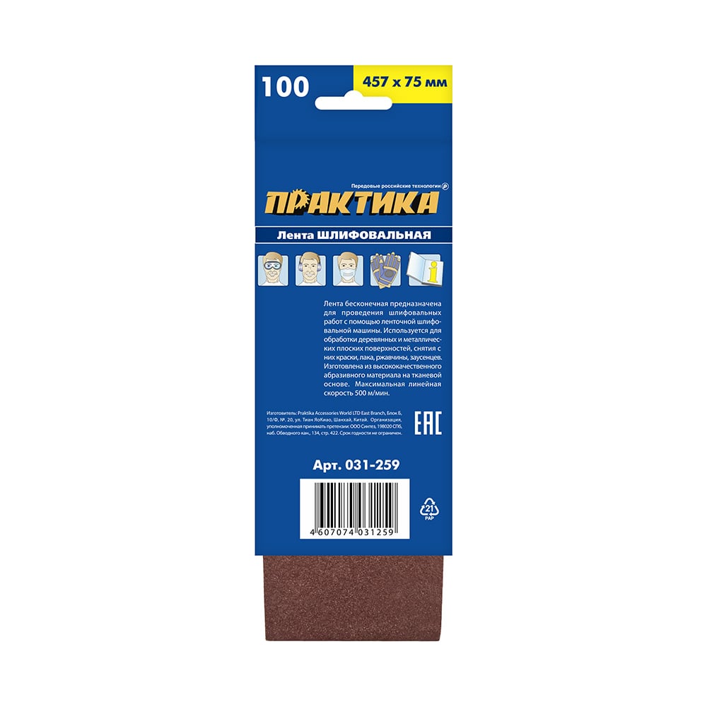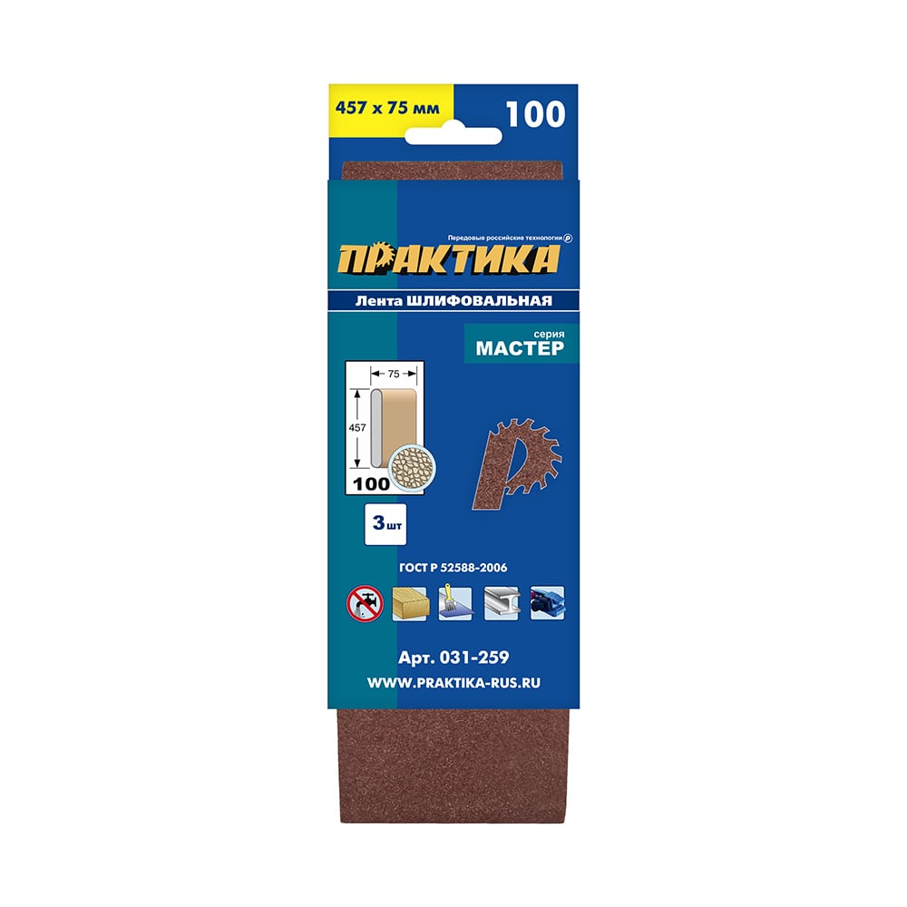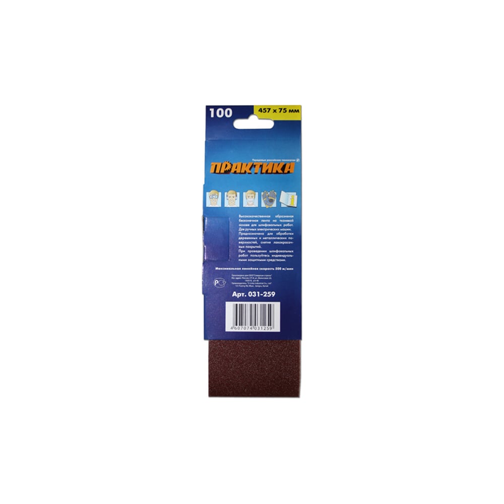 Лента шлифовальная (3 шт; 75х457 мм; P100) ПРАКТИКА 031-259