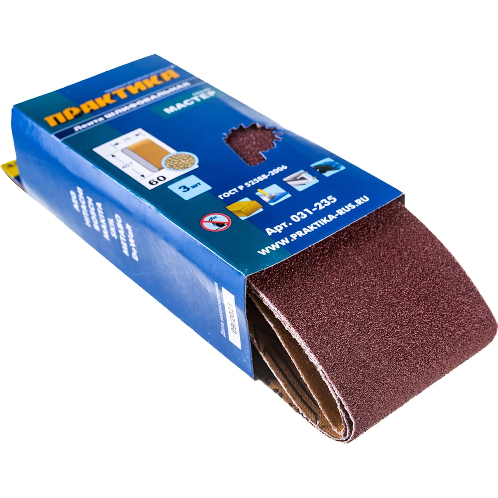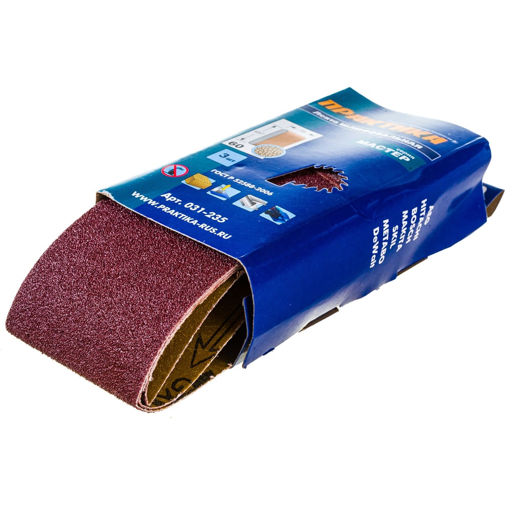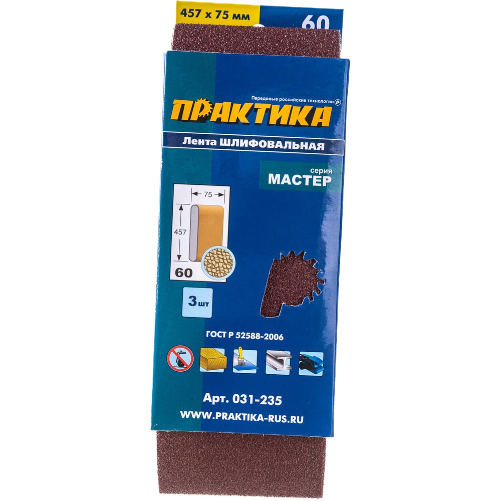 Лента шлифовальная (3 шт; 75х457 мм; P60) ПРАКТИКА 031-235