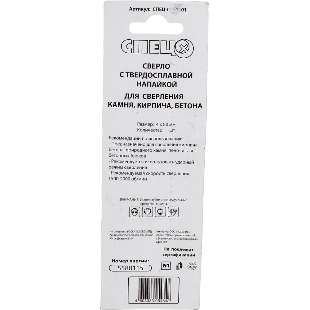 Сверло по камню с твердосплавной напайкой (4х80 мм) СПЕЦ-0320001