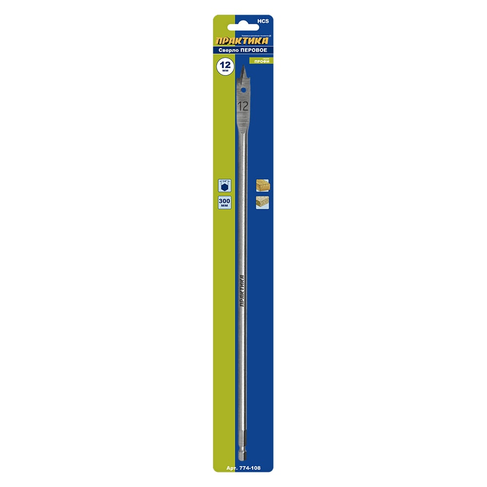 Сверло перовое по дереву (12х300 мм) ПРАКТИКА 774-108