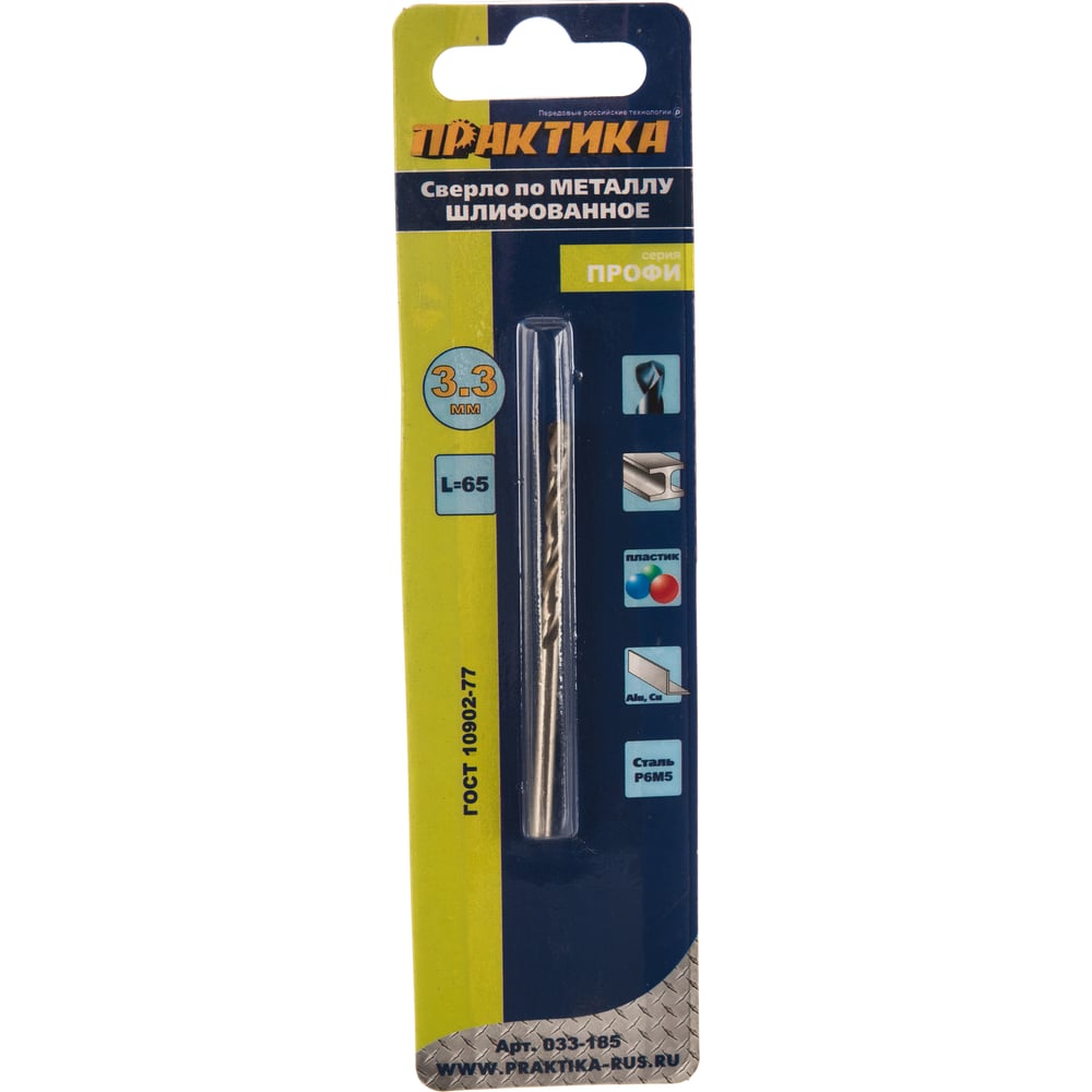 Сверло по металлу (3.3х65 мм) ПРАКТИКА 033-185
