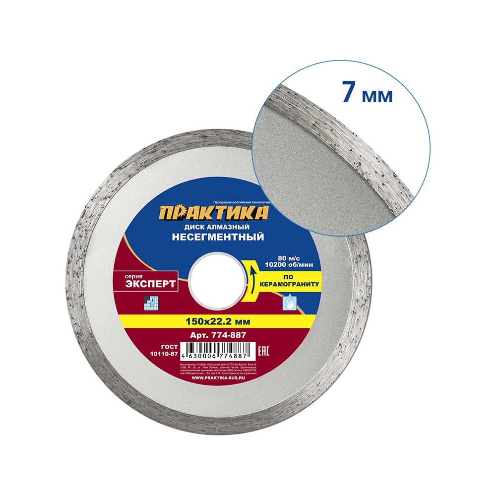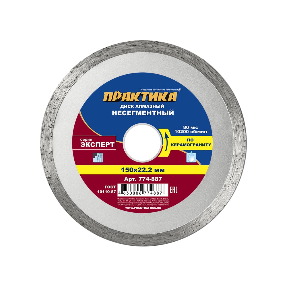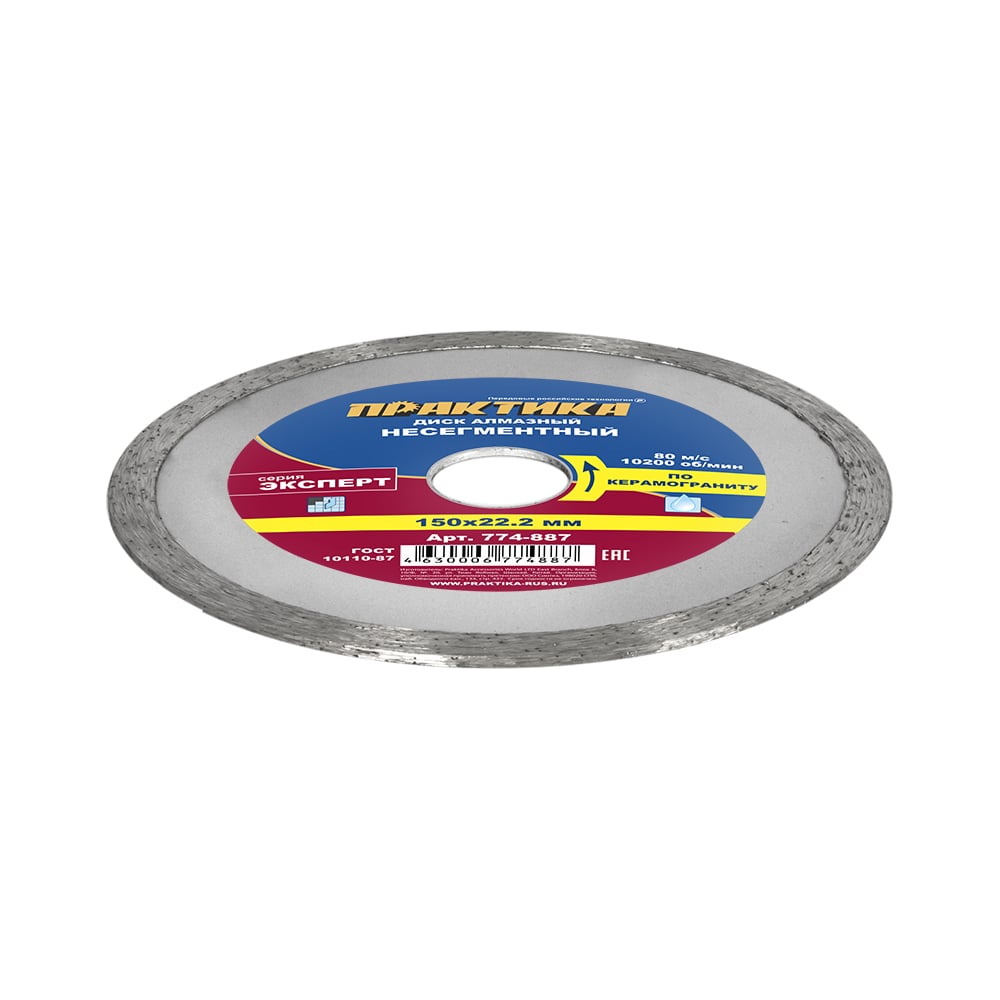 Диск алмазный Эксперт по керамограниту (150х22.2 мм) ПРАКТИКА 774-887