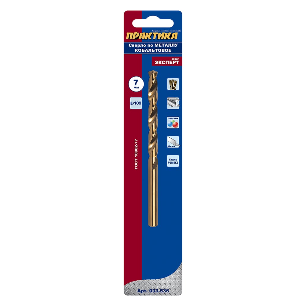 Сверло по металлу кобальтовое (7х109 мм) ПРАКТИКА 033-536