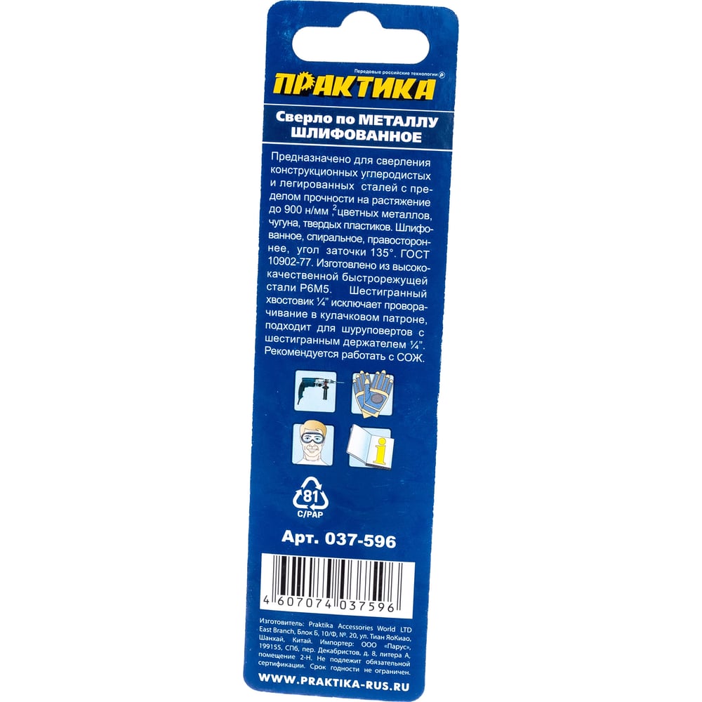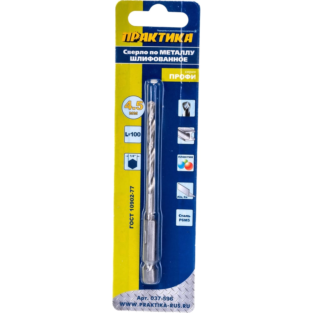 Сверло по металлу (4.5х100 мм; HEX 1/4) ПРАКТИКА 037-596