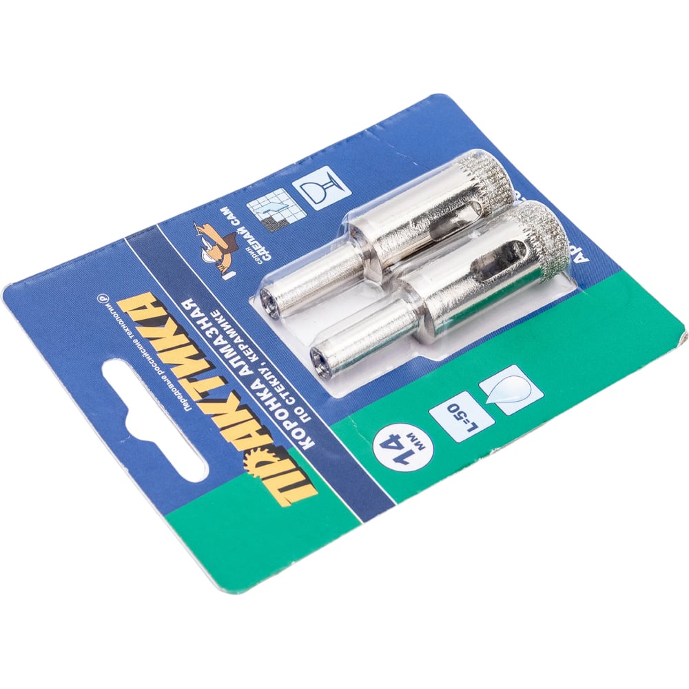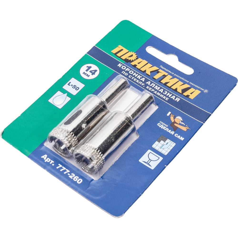 Коронка алмазная по стеклу и керамике (2 шт; 14 мм) ПРАКТИКА 777-260