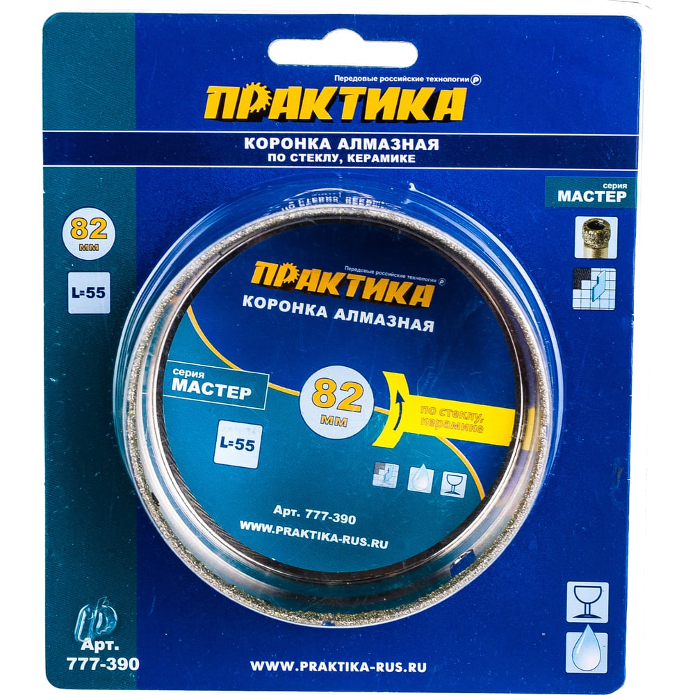 Коронка алмазная по стеклу и керамике (82 мм) ПРАКТИКА 777-390