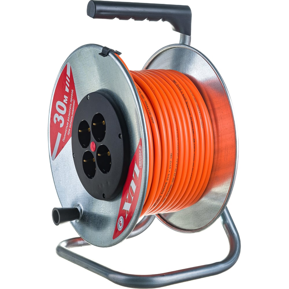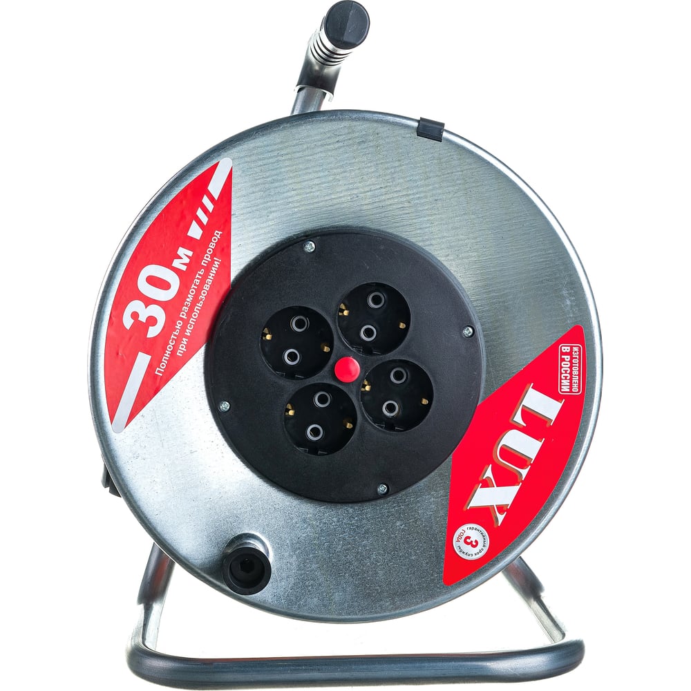 Силовой удлинитель на металлической катушке LUX К4-Е-30 30м 4 розетки с з/к 4606400419426