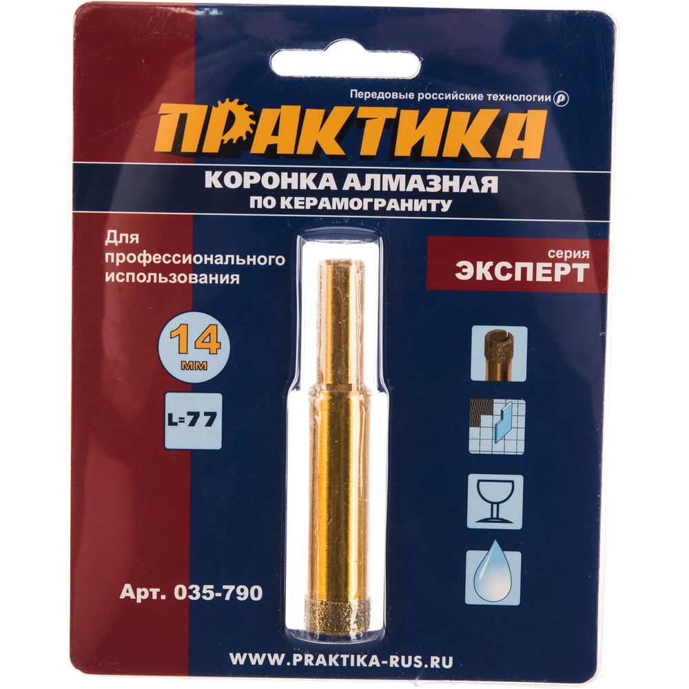 Коронка алмазная по керамограниту (14 мм) ПРАКТИКА 035-790