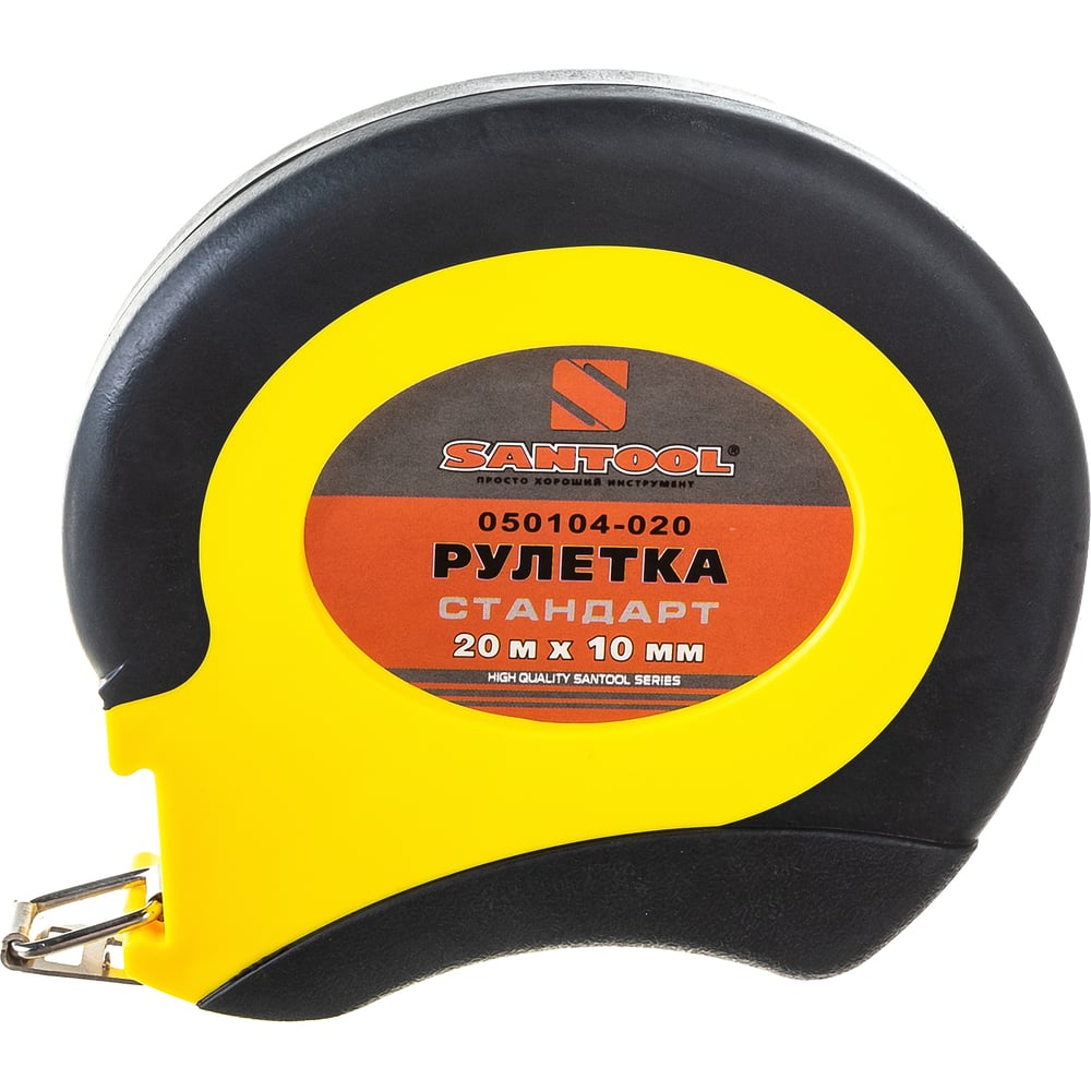 Рулетка SANTOOL 20м x 10 мм со стальной лентой в обрезиненном закрытом корпусе 050104-020