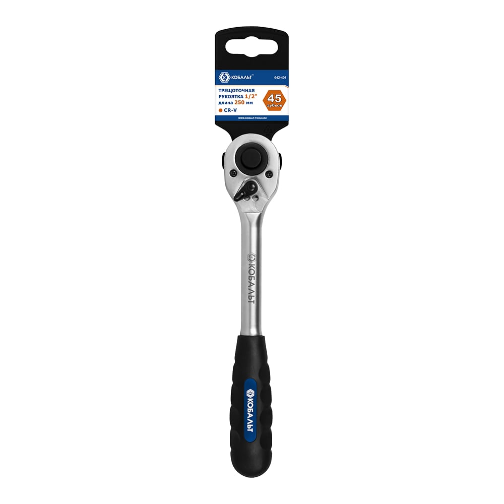 Трещоточная рукоятка 1/2, 250мм, 45зубьев КОБАЛЬТ 642-401