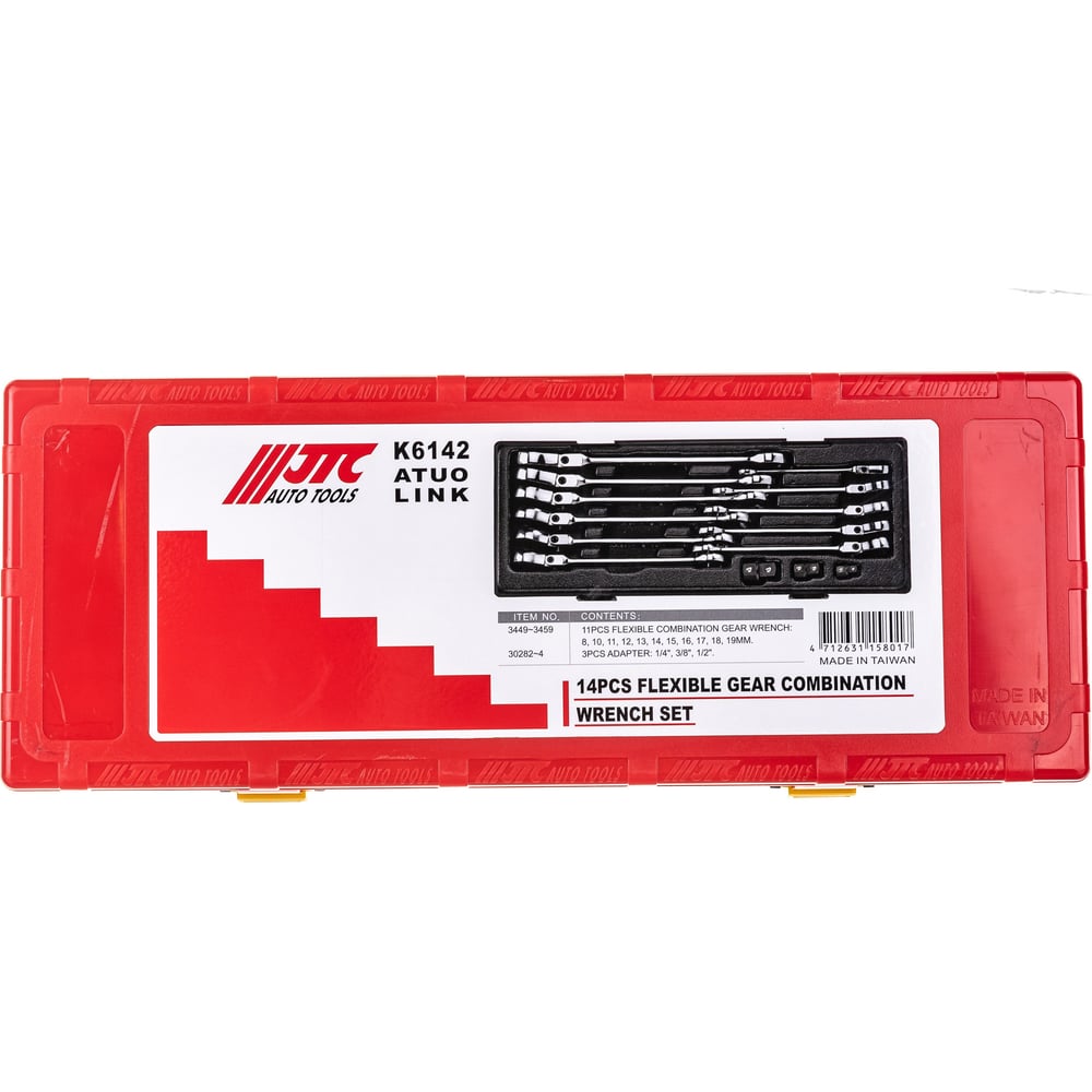 Набор комбинированных трещоточных ключей с подвижной головкой JTC 8-19 мм 14 предметов 1-K6142