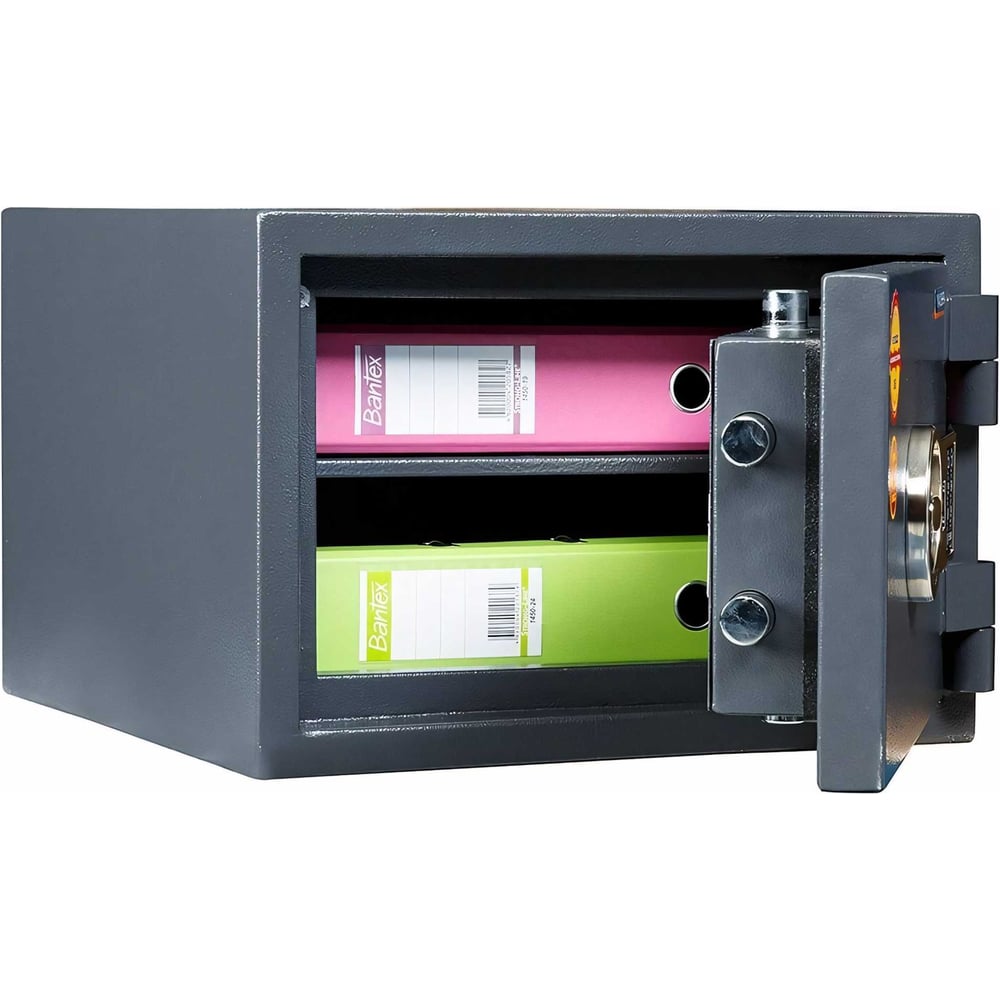 Габариты без упаковки 300х440х430 мм Высота 300 мм Материал сталь Ширина 440 мм Цвет графит с эффектом молотковой эмали Класс товара Профессиональный Вес нетто 87 кг Назначение для ценностей и документов Количество полок 1 Способ установки напольный Глубина 430 мм Встраиваемый нет Тип замка электронный Встроенное отделение нет Огнестойкость 30Б Внутренние габариты 222х366х304 мм Количество секций 1 Кешбокс нет Сейф-книга нет Объем 0.025 м³ Толщина стенок 38 мм Класс взломостойкости двери (ГОСТ-Р) 1 Класс взломостойкости двери (РСБ-С/ECB-S) S2 Тип защиты огневзломостойкий Количество стволов нет Высота ствола (мм) нет