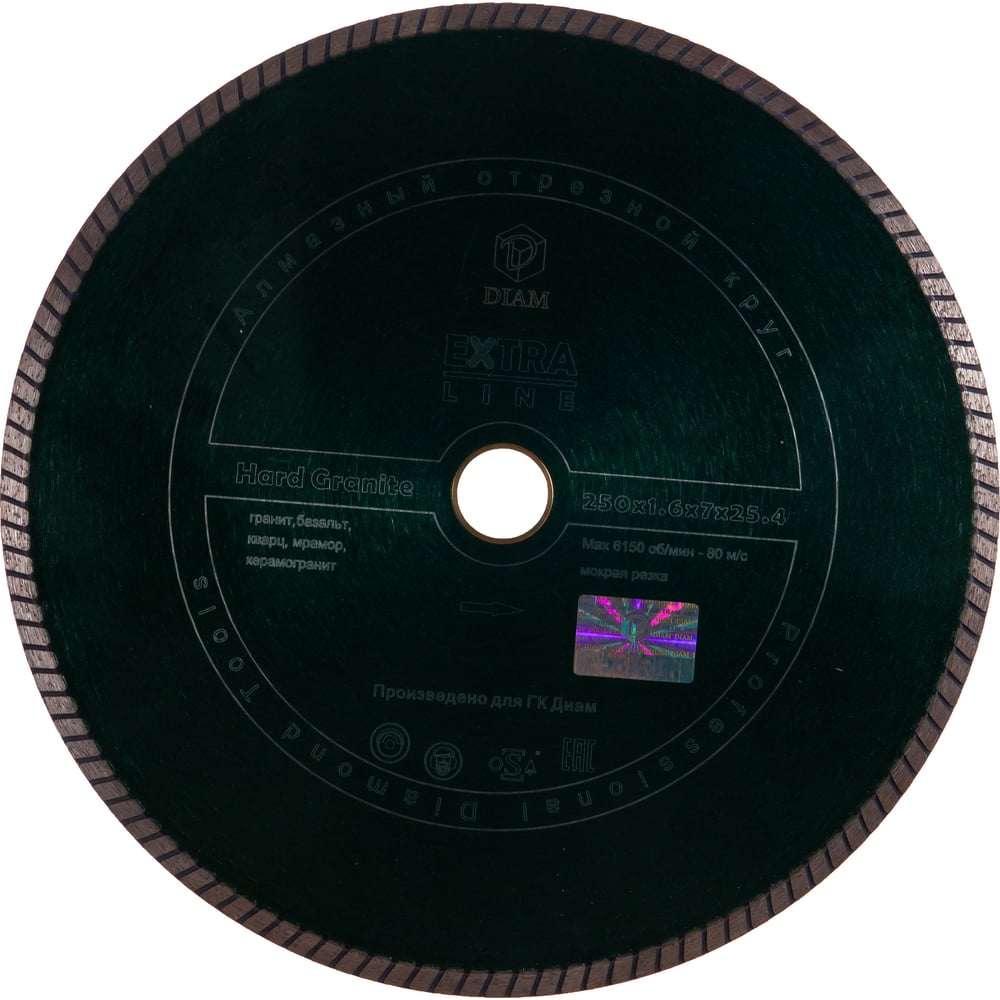Круг алмазный отрезной по граниту 1A1R Turbo Hard Granite (250x1.6x7x25.4 мм) Diam 000475