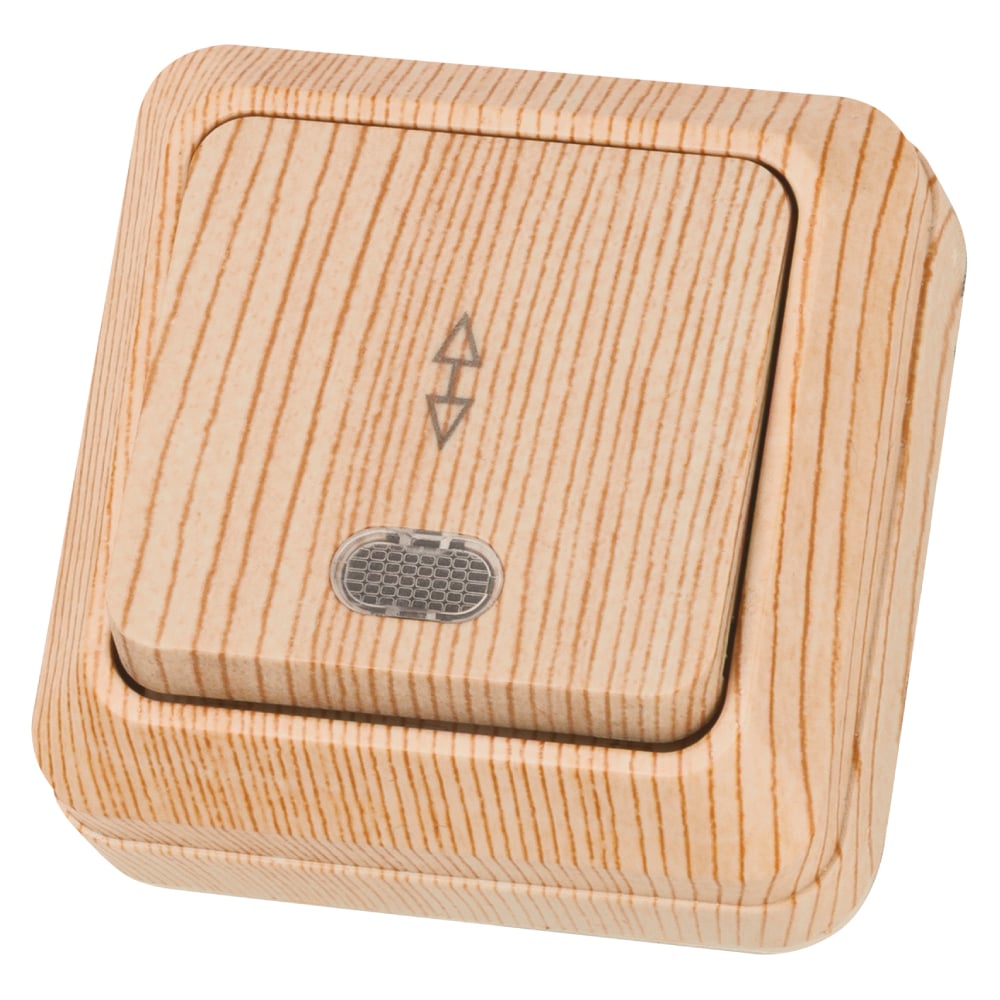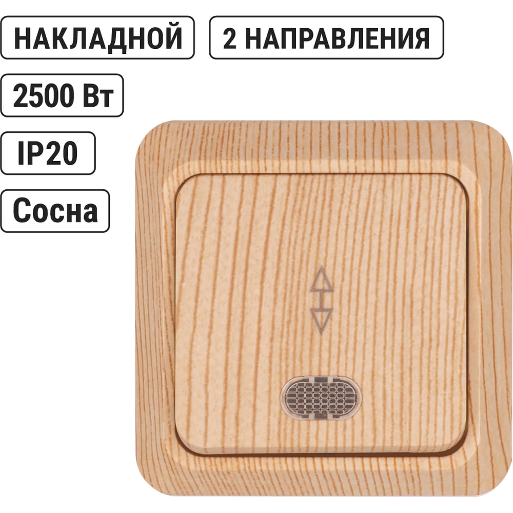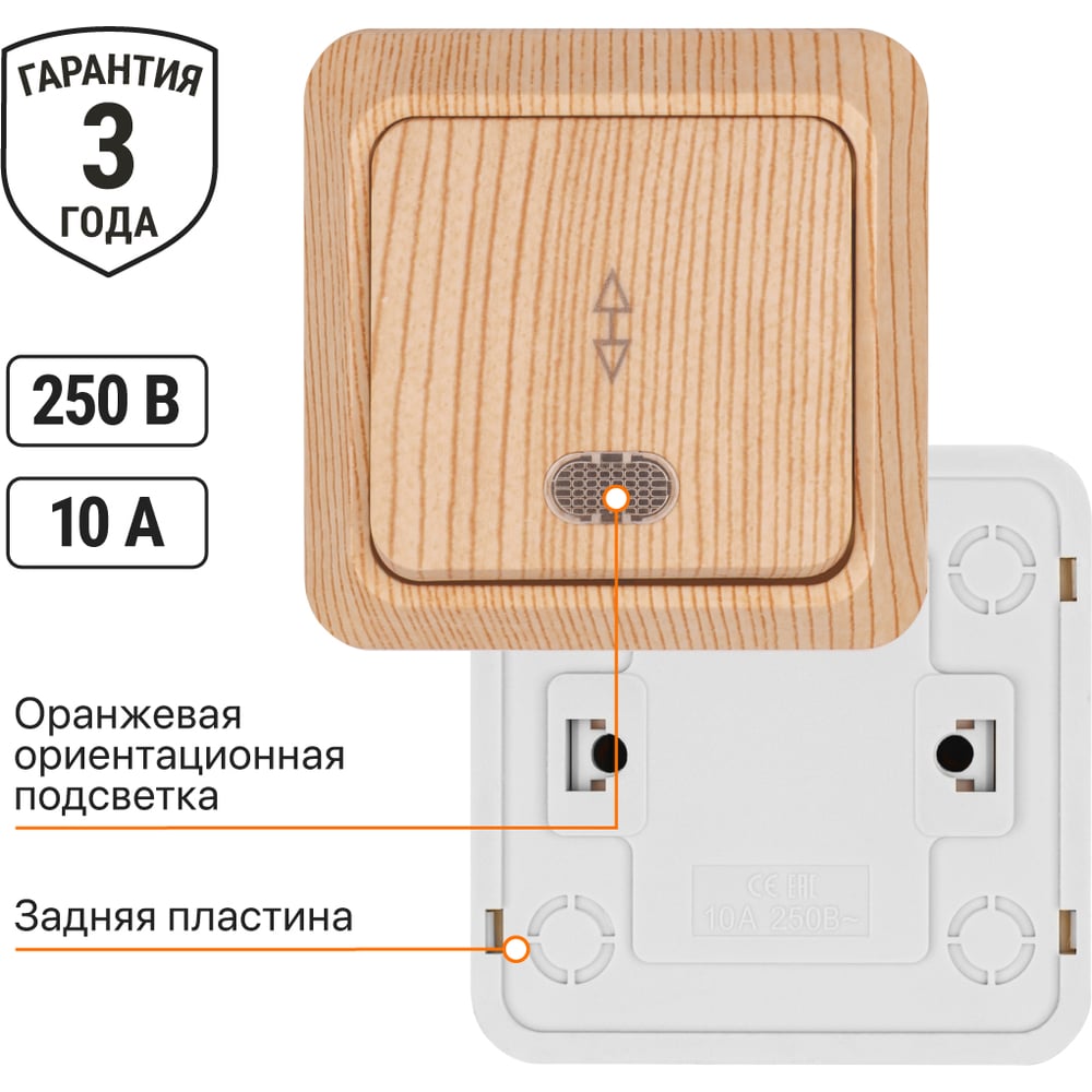 Переключатель на 2 направления TDM ELECTRIC 1-кл. открытой установки с подсветкой IP20 10А, сосна, серия "Ладога" SQ1801-0048