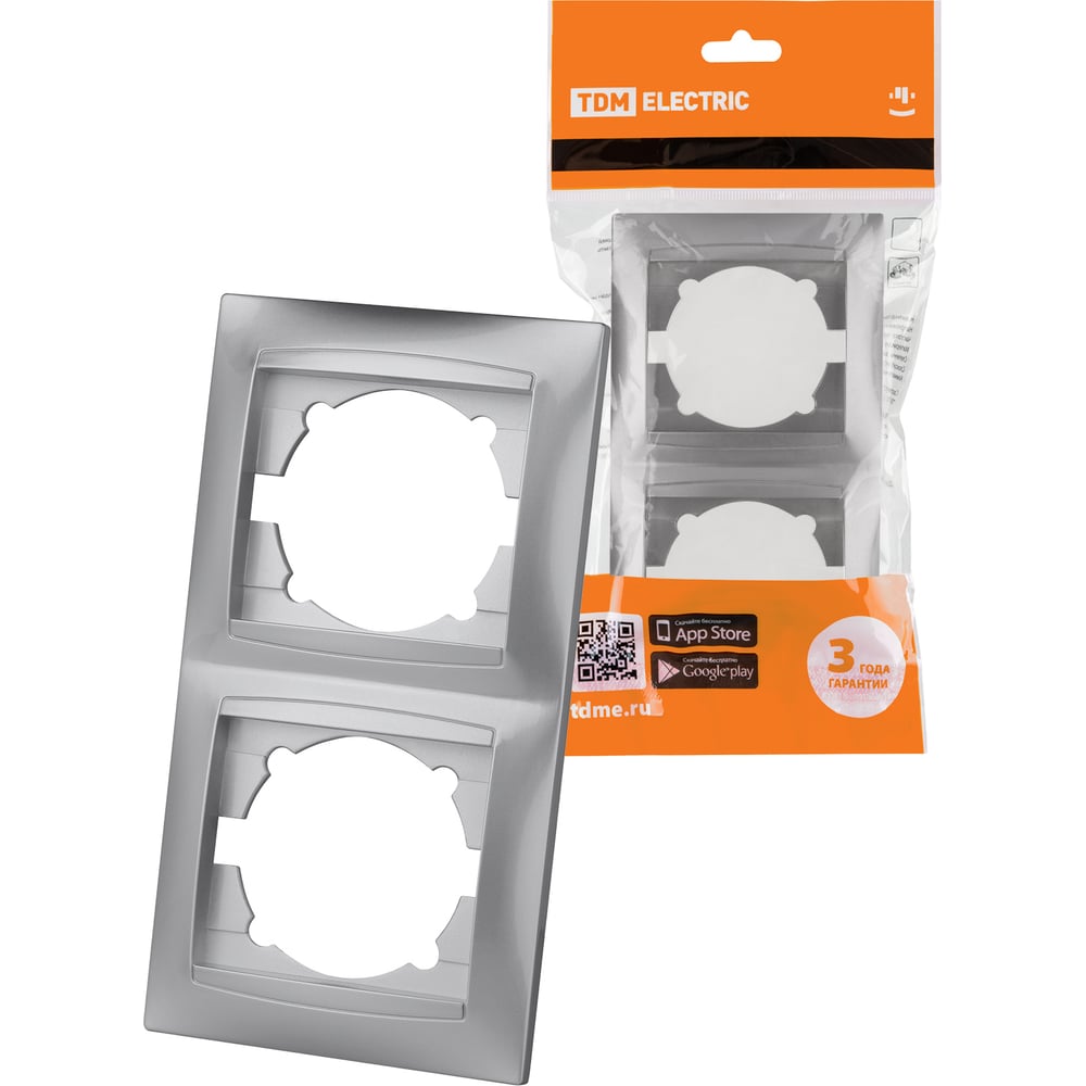 Рамка 2-х постовая вертикальная TDM ELECTRIC серебристый металлик, серия"Лама" SQ1815-0233