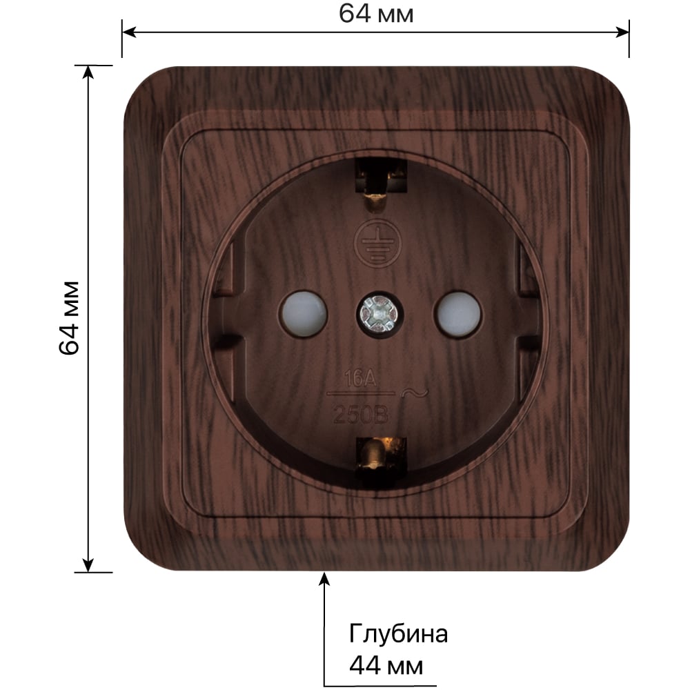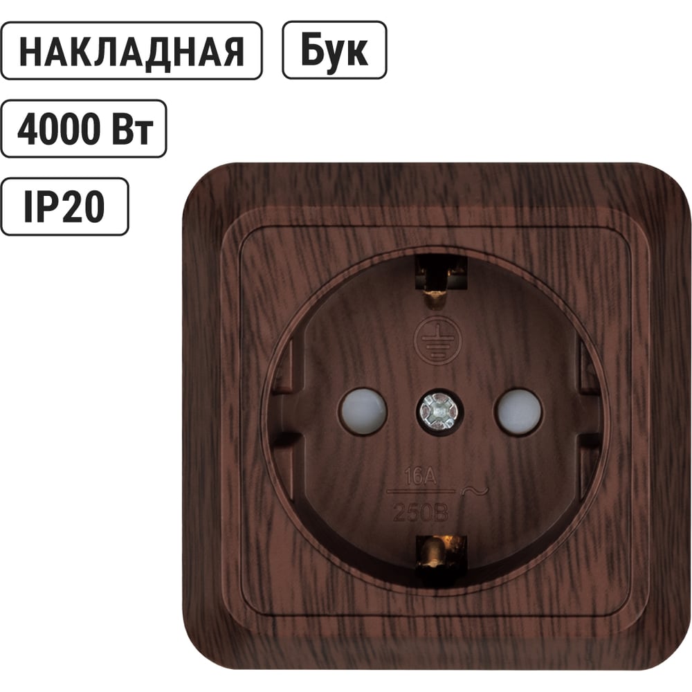 Розетка TDM ELECTRIC 2П+З открытой установки с защитными шторками IP20 16А, бук, серия "Ладога" SQ1801-0038