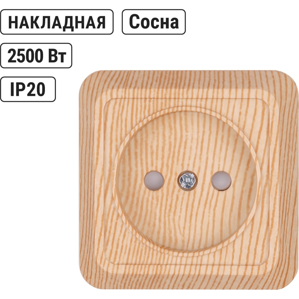 Розетка TDM ELECTRIC 2П открытой установки с защитными шторками IP20 10А, сосна, серия "Ладога" SQ1801-0053