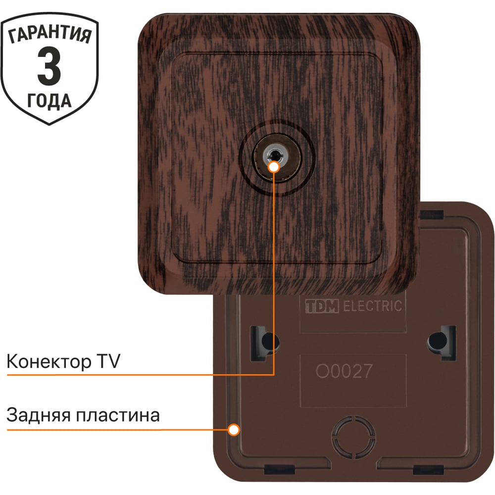 Розетка TDM ELECTRIC TВ простая (0-2400 Гц, "мама") открытой установки, IP20 бук, серия "Ладога" SQ1801-0042