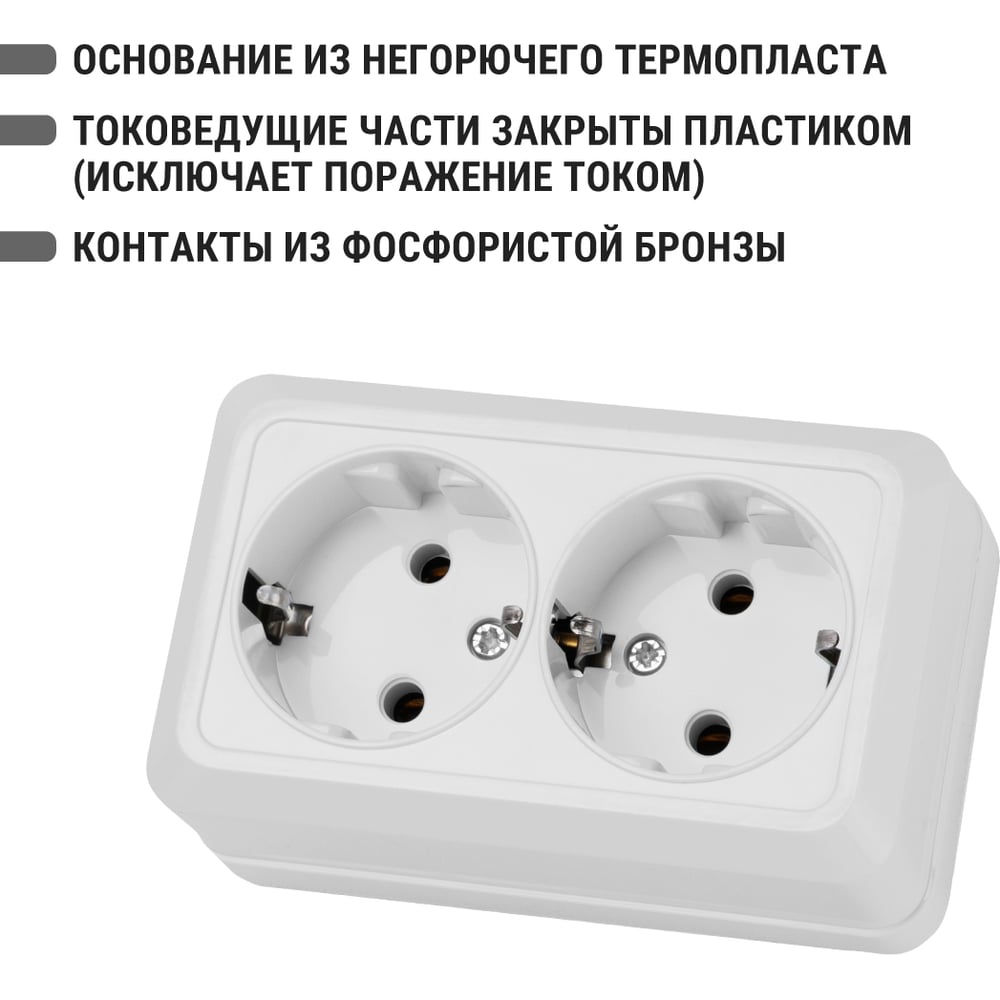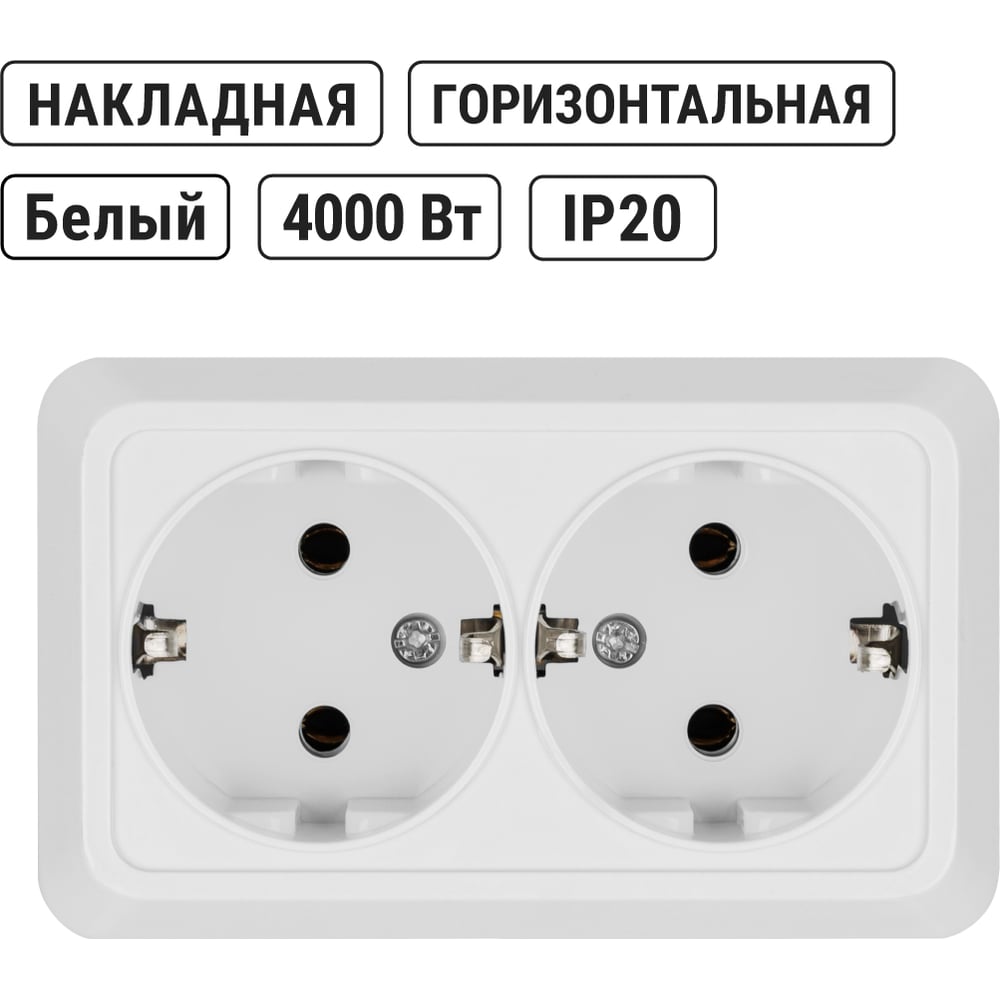 Двойная розетка открытой установки 2П+3 IP20 16А, белая TDM ELECTRIC Ладога SQ1801-0019