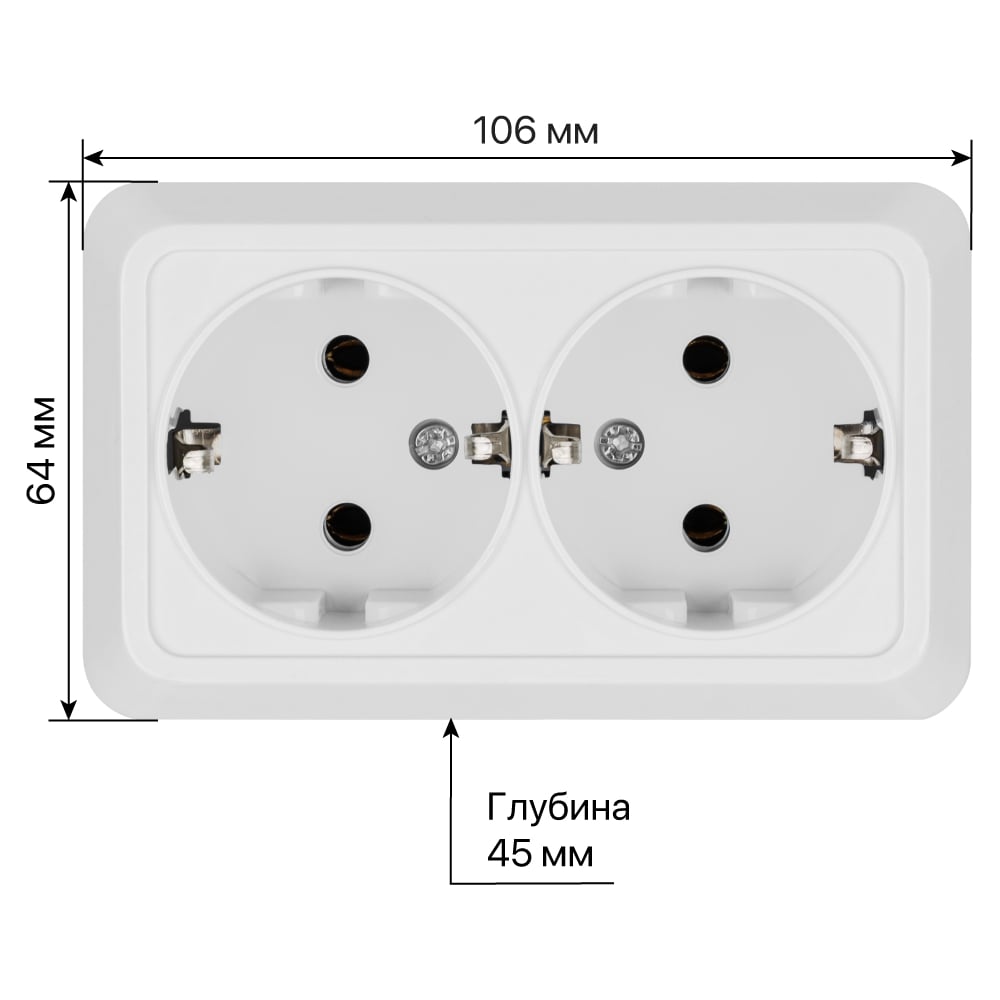 Материал АБС-пластик Цвет белый Вес нетто 0.096 кг Серия Ладога Форма прямоугольная Степень защиты IP20 Номинальное напряжение 250 В Количество в упаковке 1 шт Количество модулей нет Заземление есть Монтаж накладной (открытый) Модульная нет Палитра белый Max ток 16 А Количество гнезд 2 Крышка нет Вид розетки силовая Тип комплектации розетка в сборе Количество постов 2 Рамка не требуется(идет в комплекте) Защитные шторки нет Ширина устройства 64 мм Высота устройства 106 мм Глубина устройства 43 мм Зажимная система винты Количество фаз 1 шт Ориентация монтажа универсальная Наличие задней стенки да