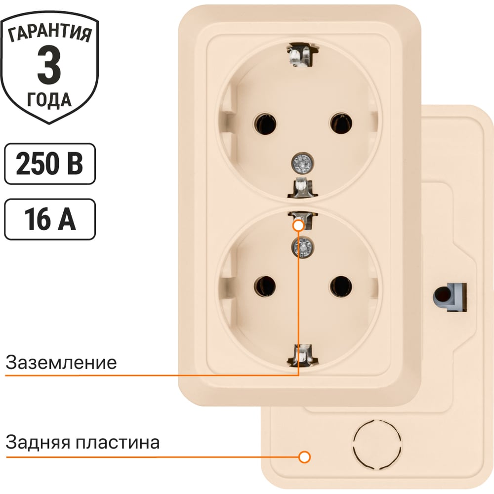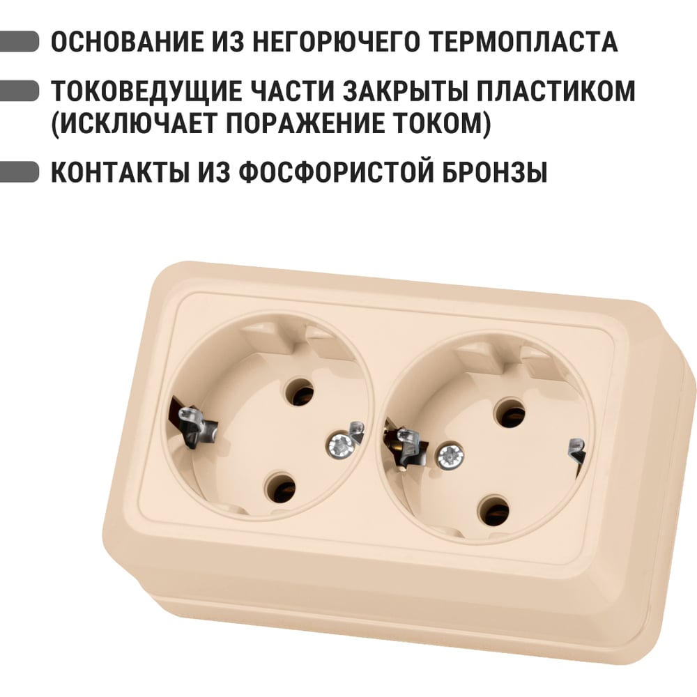 Двойная розетка открытой установки 2П+3 IP20 16А, слоновая кость TDM ELECTRIC Ладога SQ1801-0020