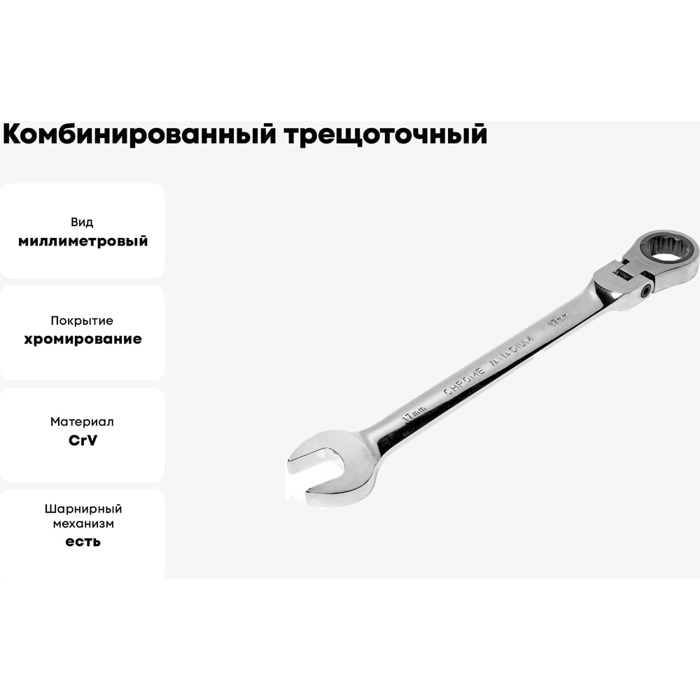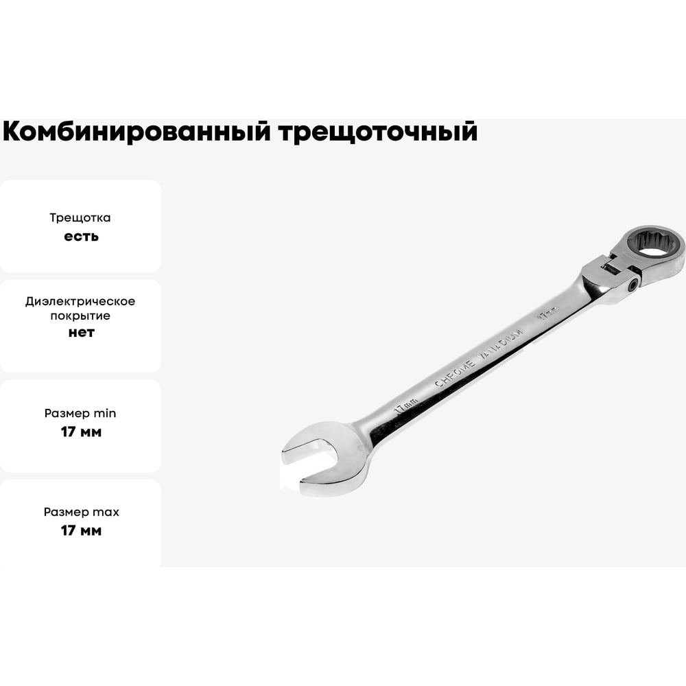 Комбинированный трещоточный шарнирный ключ 17мм JTC-3457