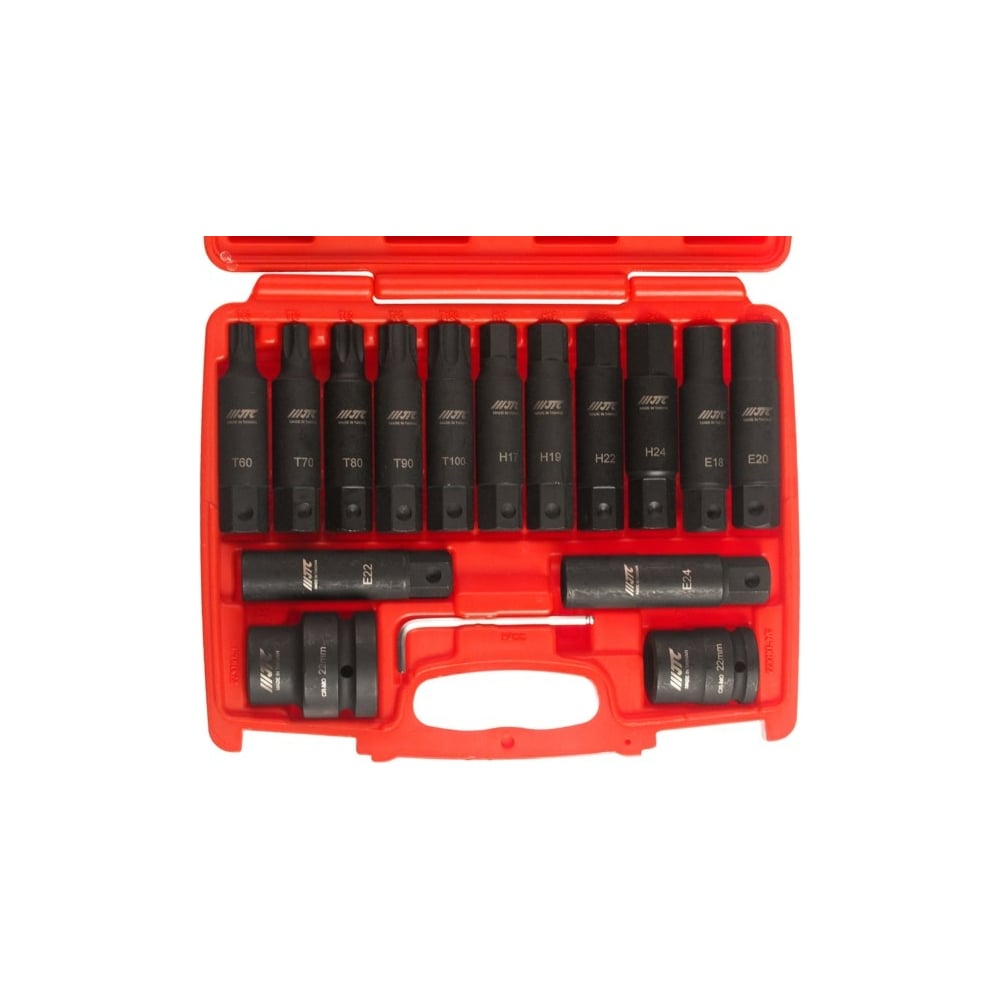 Набор ударных бит 3/4" SPLINE Е18-24, TORX Т60-100, HEX Н17-24 с держателем 3/4", 1" 107 мм (16 предметов) JTC J616C