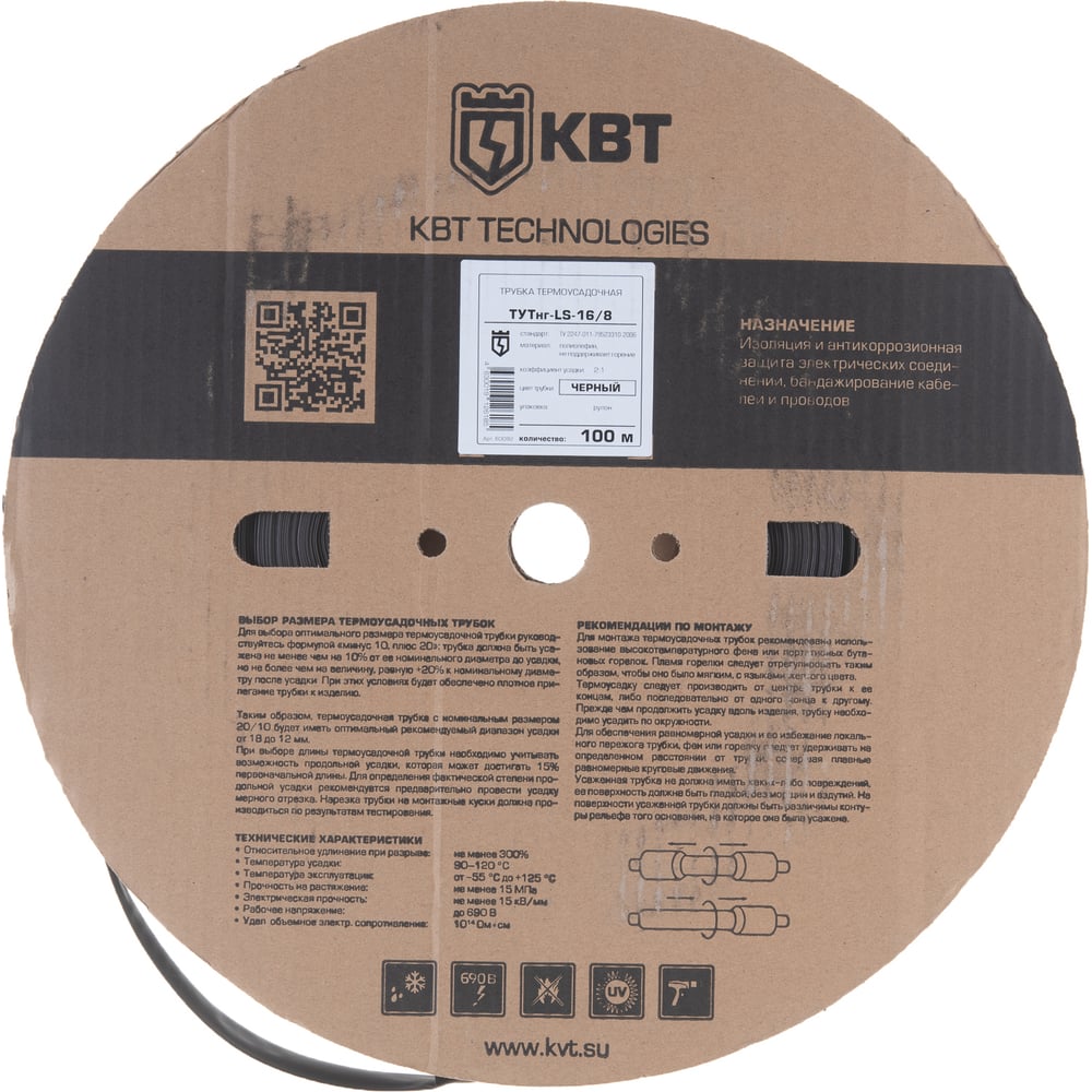 Трубка термоусадочная ТУТнг-16/8 черная КВТ 60092