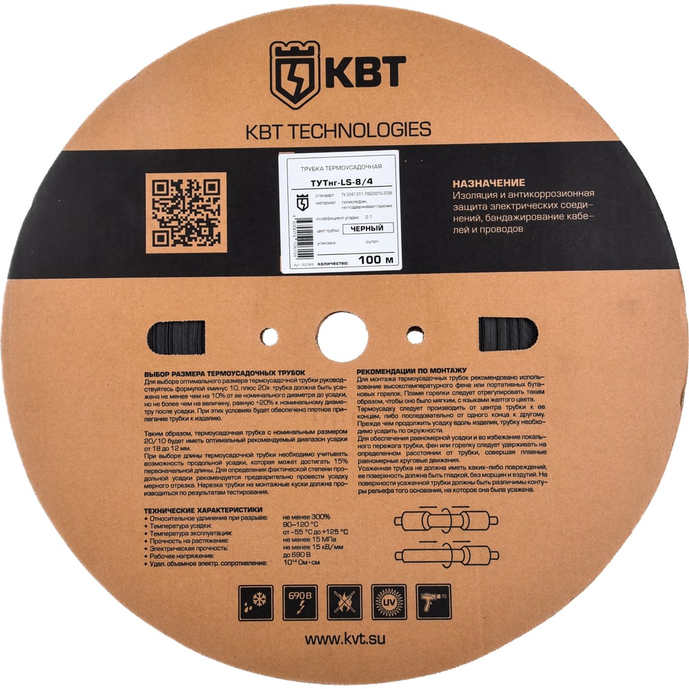 Трубка термоусадочная ТУТнг-8/4 черная КВТ 60089