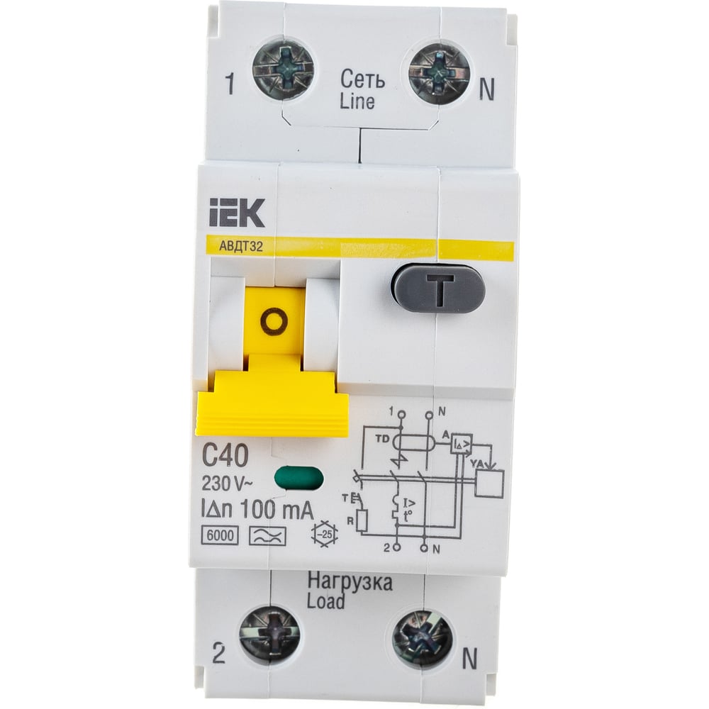 Автоматический выключатель дифференциального тока 1п+N C 40A 100mA A 6kA IEK АВДТ-32 MAD22-5-040-C-100 222385