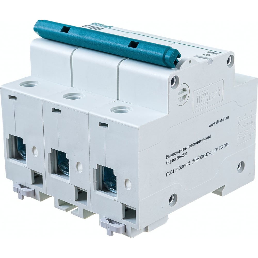 Автоматический выключатель (АВ) DEKraft ВА-201, 3 Р, тип C, 100 А, 10 кА 13009DEK