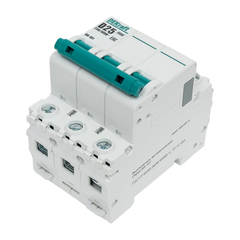 Автоматический выключатель (АВ) DEKraft ВА-101, 3 Р, хар-ка D, 25 А, 4.5 кА 11128DEK