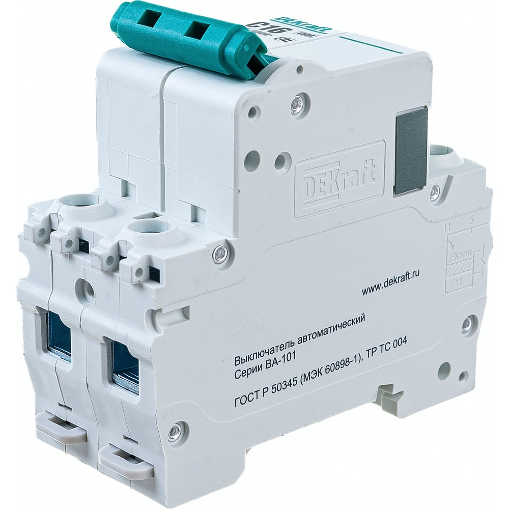 Автоматический выключатель DEKraft (АВ) ВА-101, 2 Р, хар-ка C, 16 А, 4.5 кА 11066DEK