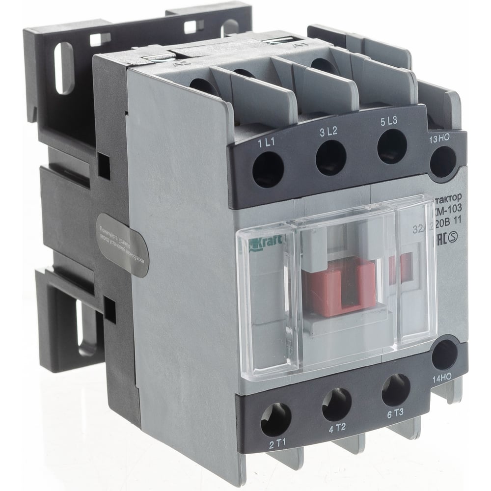 Контактор АС3 DEKraft КМ-103, 3 Р, 32 А, 220 В, 1НО+1НЗ 22123DEK