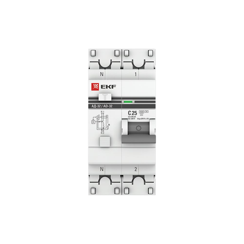 Дифавтомат EKF АД-32 PROxima 1п+N 2мод. C 25A 30mA AC 3kA DA32-25-30-pro