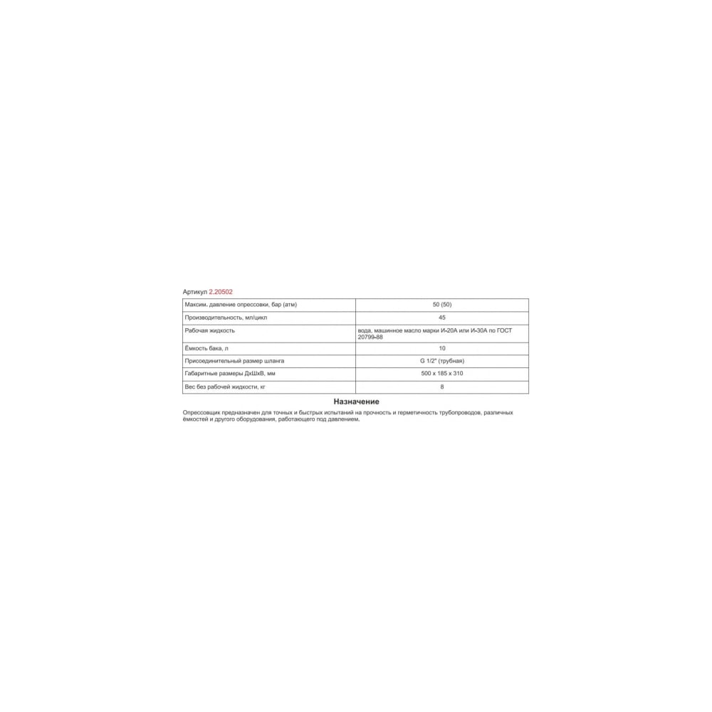 | Тип | ручной опрессовщик |