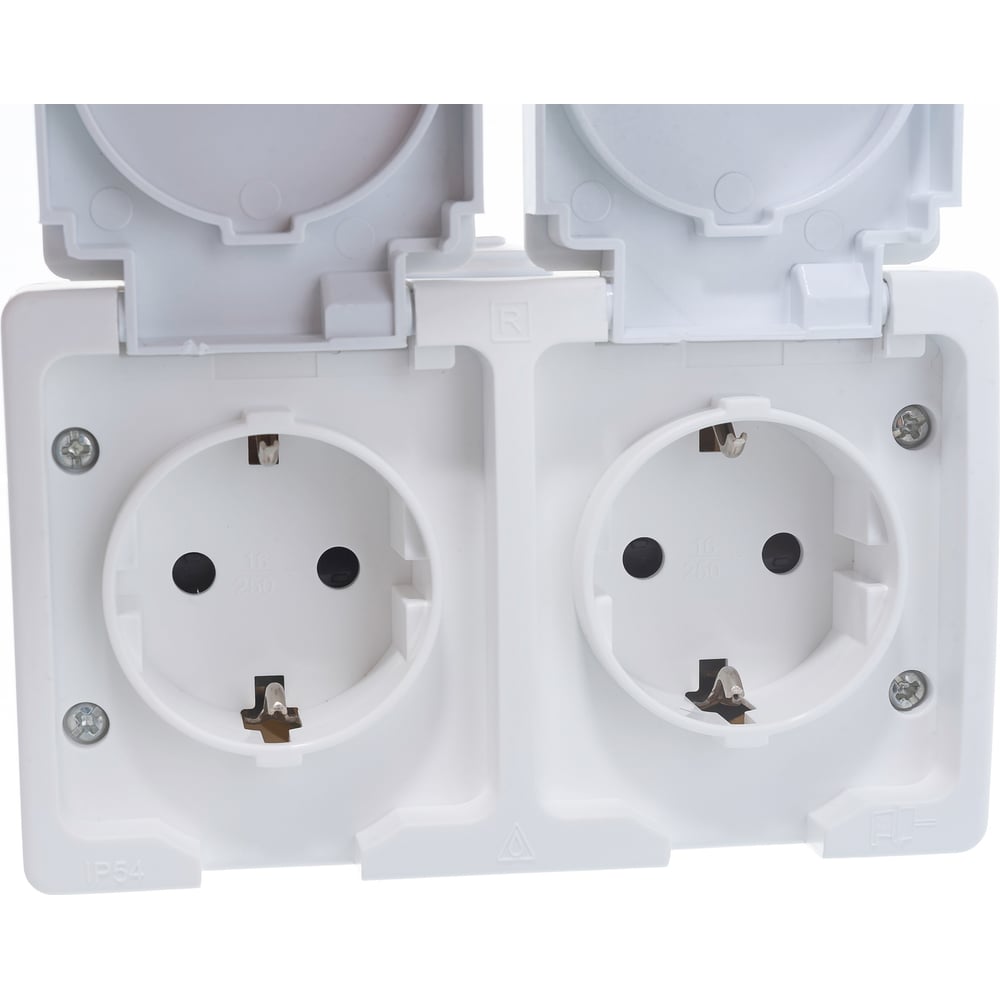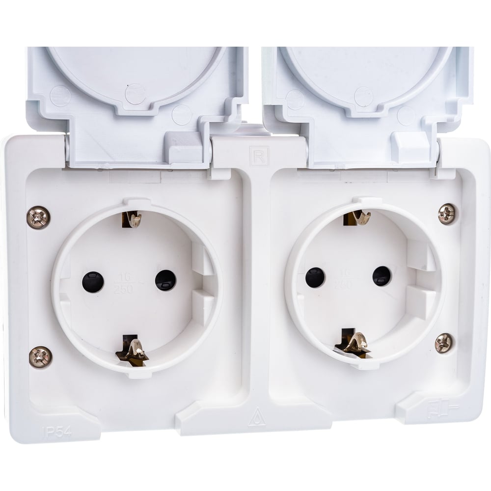 Блок: розетка + розетка с заземлением, с защитными шторками, с крышкой IP-54, белый UNIVersal Аллегро 5562951