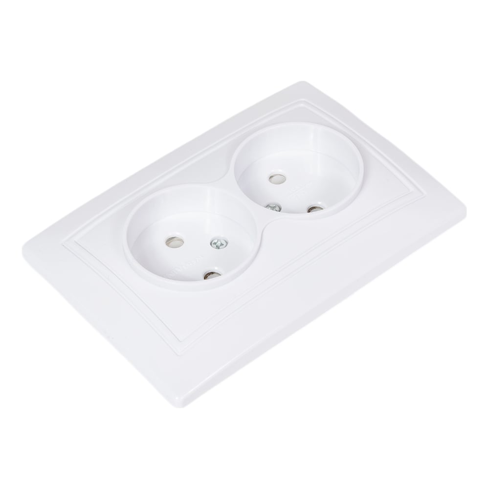 Двойная розетка без заземления с защитными шторками, белая UNIVersal Севиль C0048