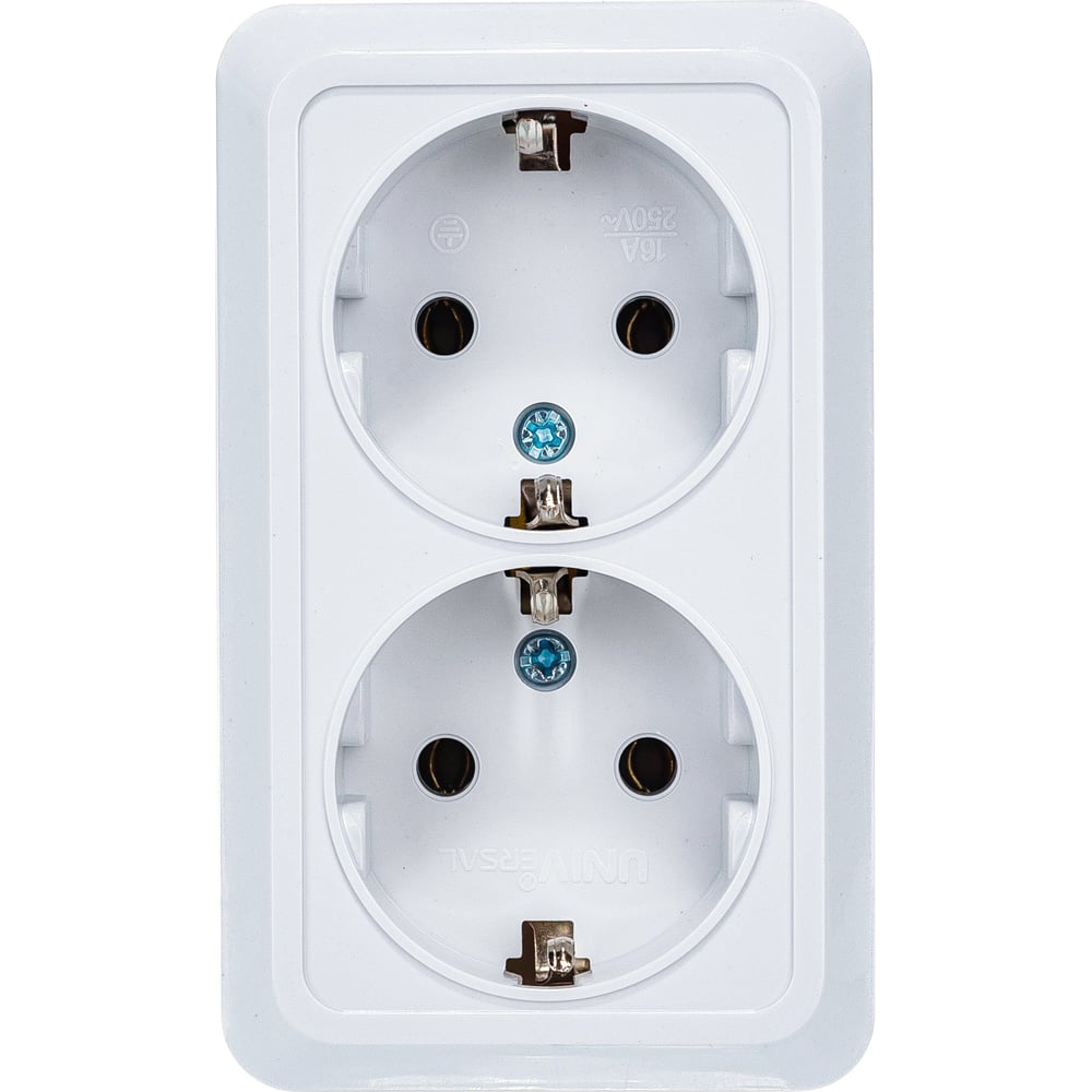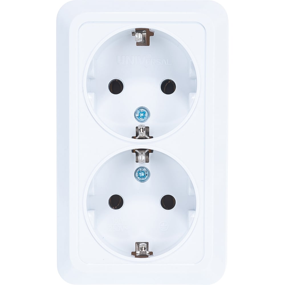 Двойная розетка с заземлением, белая UNIVersal Олимп О0128