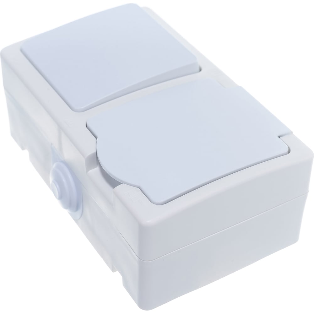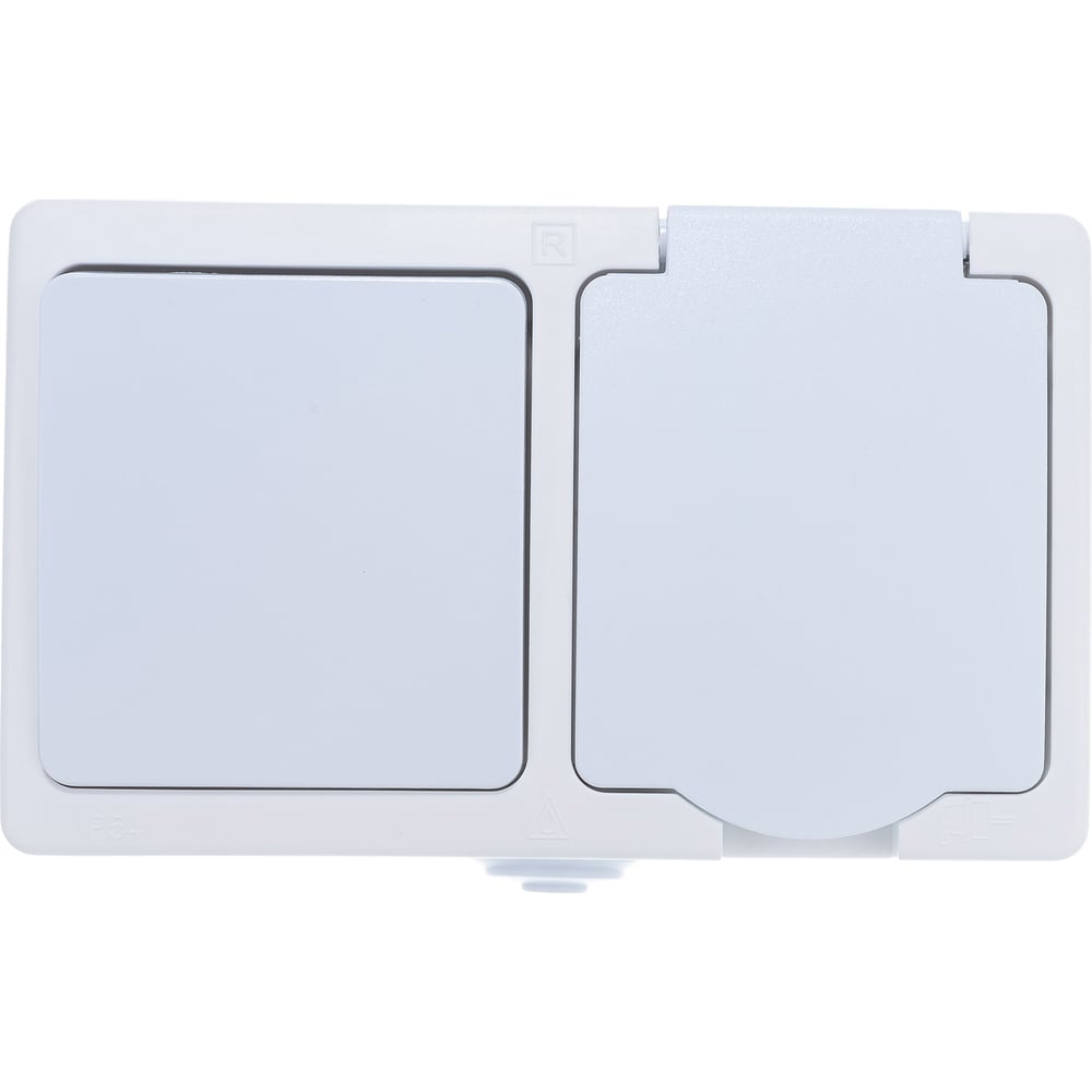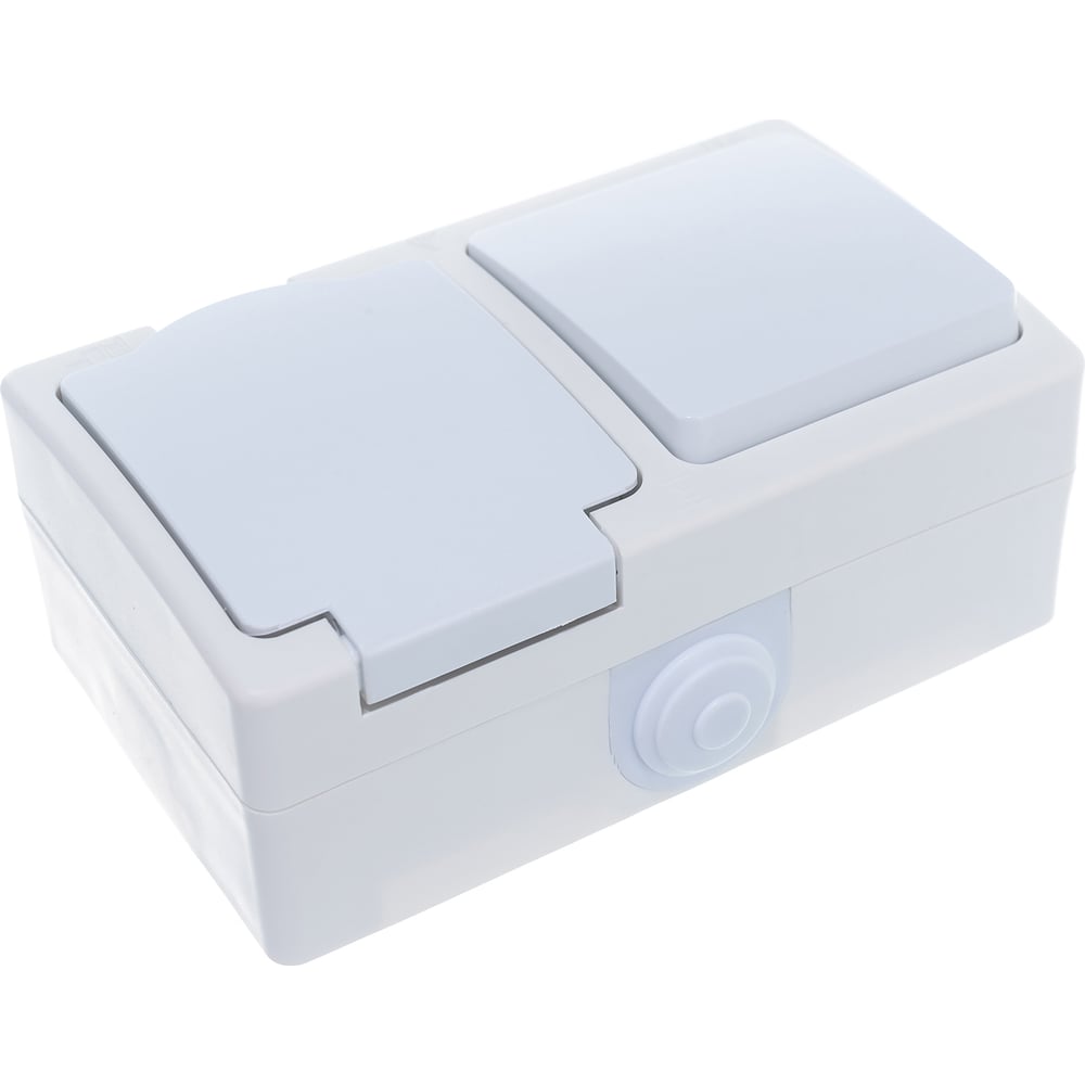 Блок: одноклавишный выключатель + розетка с заземлением, с защитными шторками, с крышкой IP-54, белый UNIVersal Аллегро 5562968