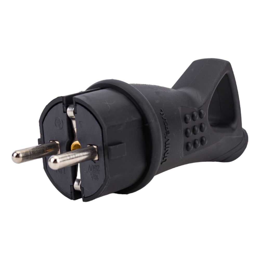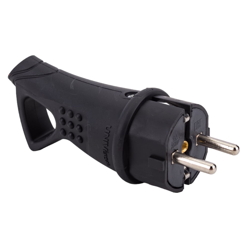 Угловая однофазная вилка с ушком, каучук UNIVersal 0003