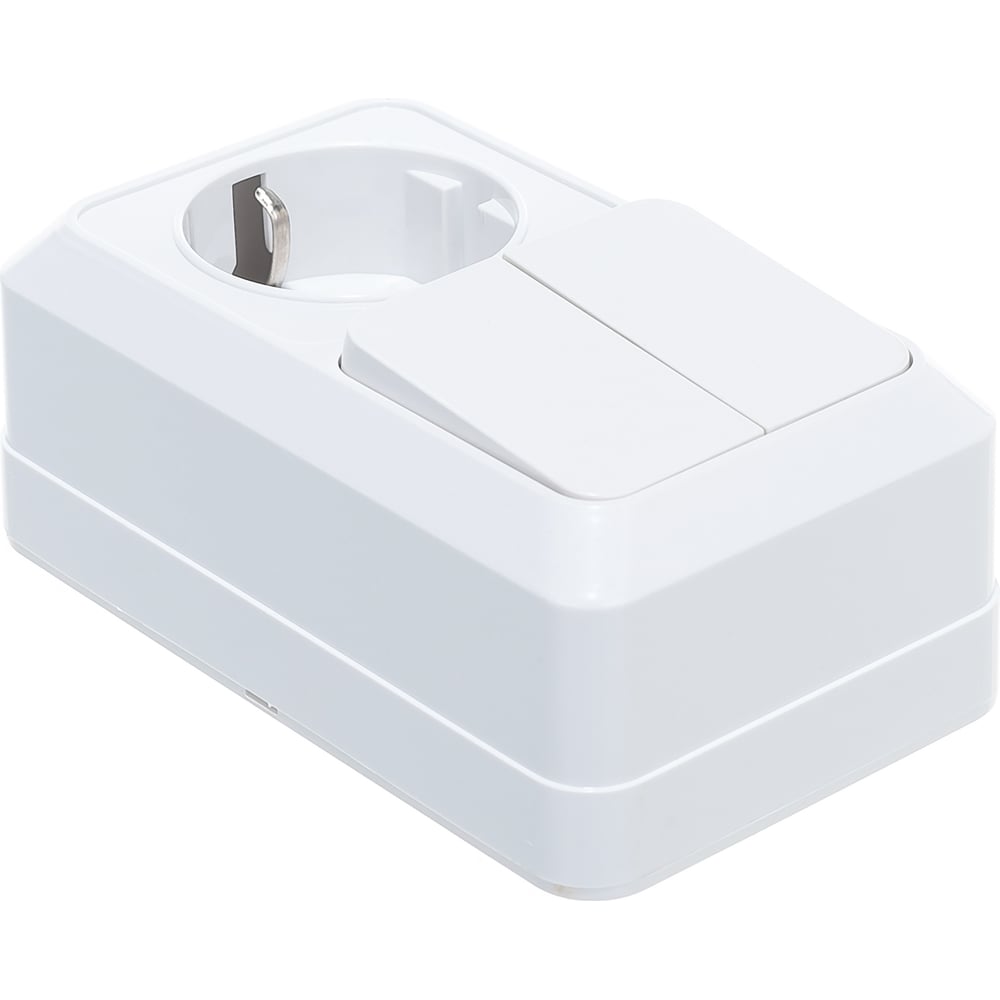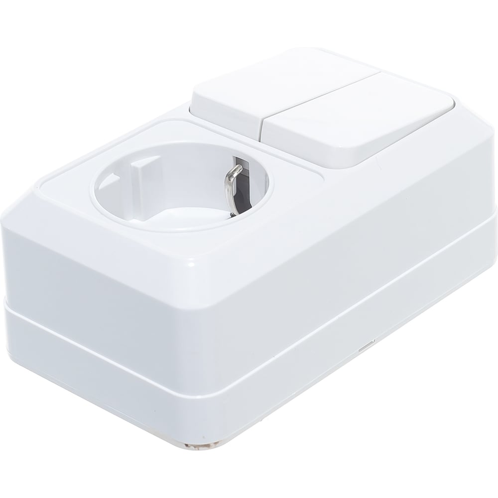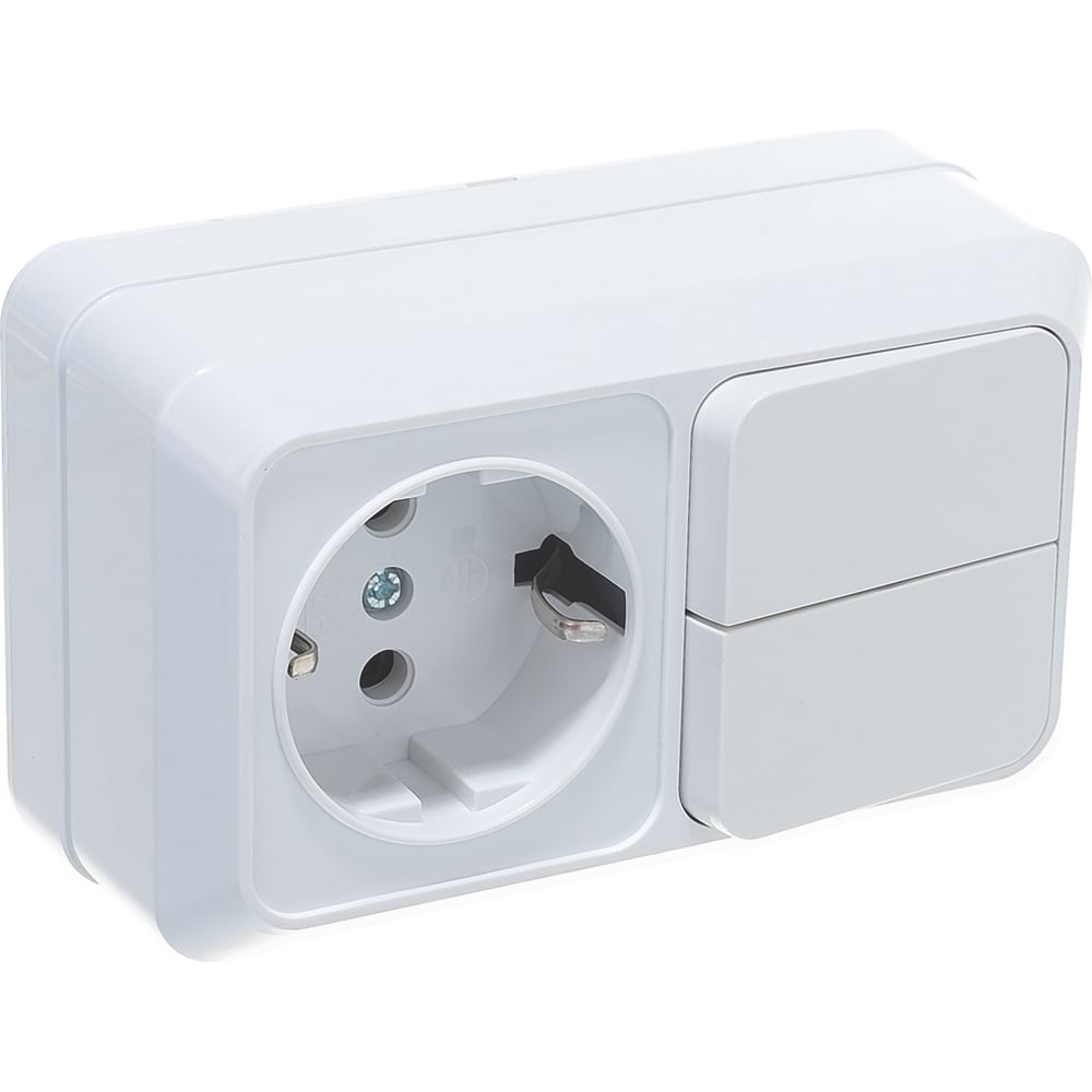 Вертикальный блок: двухклавишный выключатель + розетка с заземлением, белый UNIVersal Олимп О0040