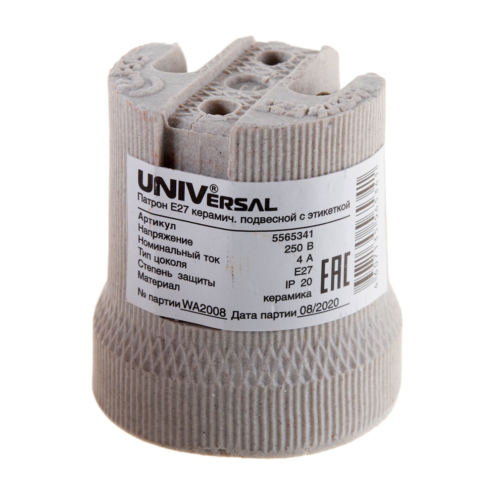 Патрон Е27 керамический подвесной 4А 250В с этикеткой UNIVersal 5565341