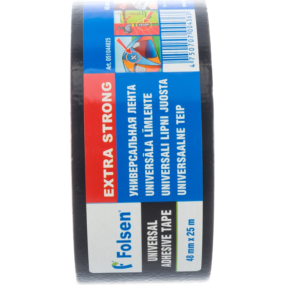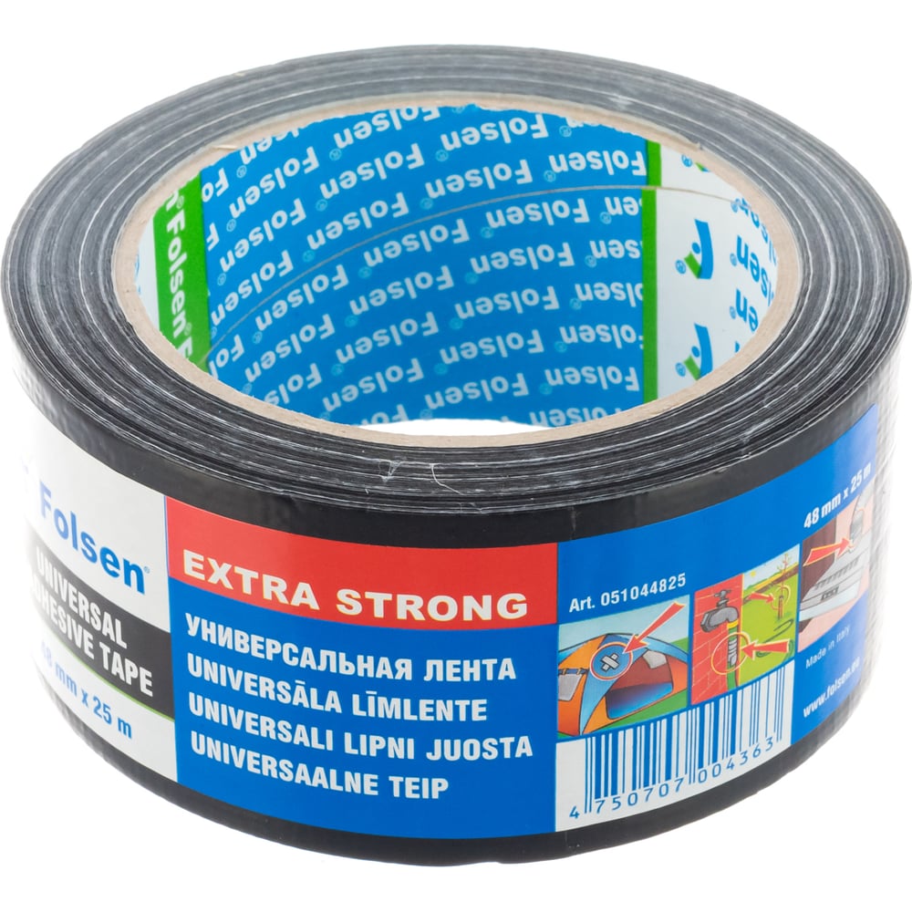 Универсальная тканевая влагоустойчивая лента Folsen 48ммx25м черная 240мк 051044825