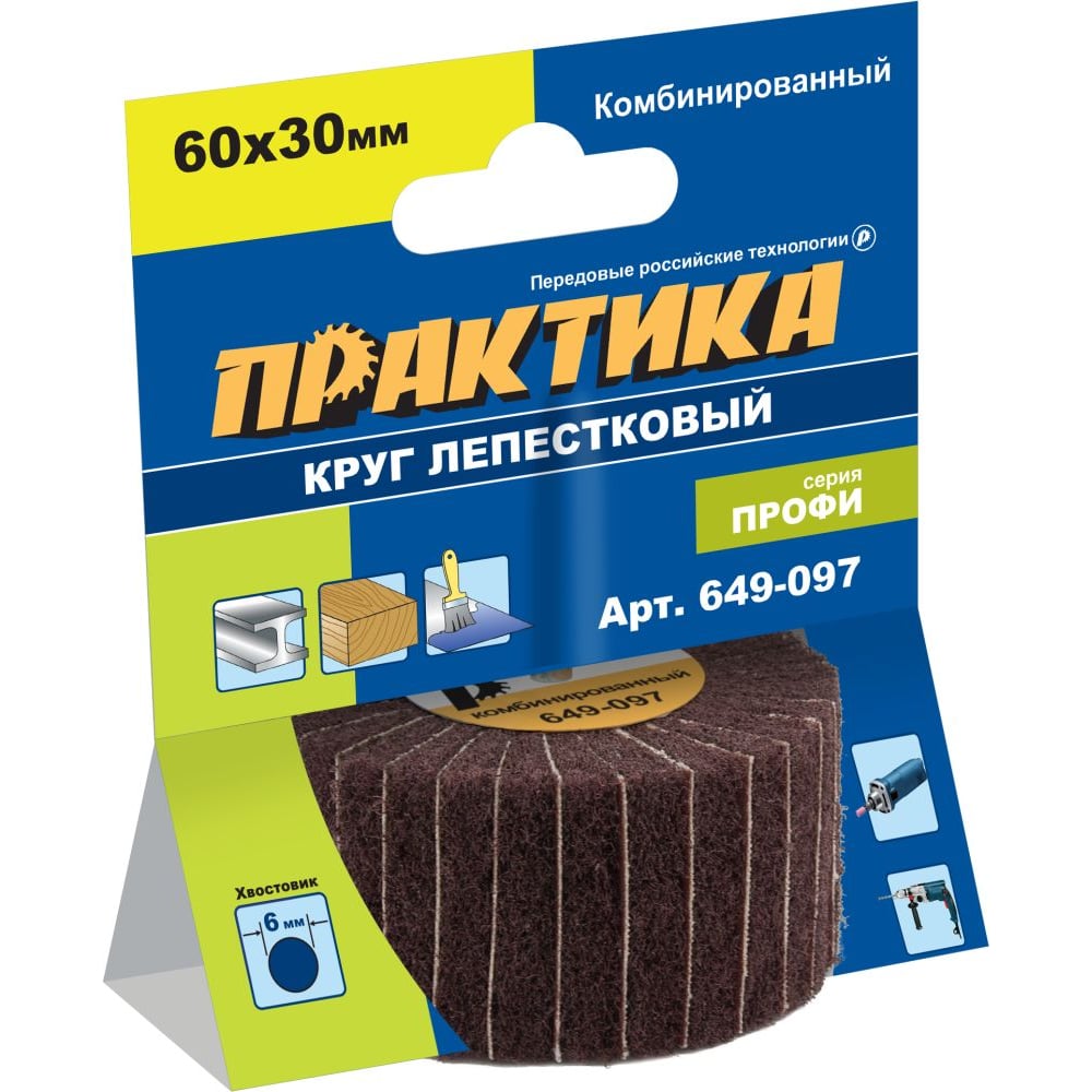 Круг лепестковый комбинированный с оправкой (60х30 мм) ПРАКТИКА 649-097