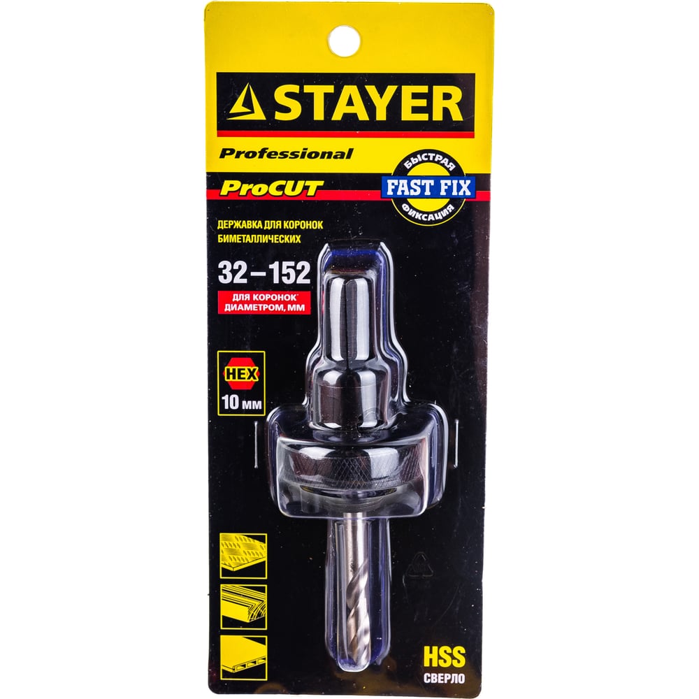 Державка "PROFESSIONAL" с пружинный фиксатором для коронок (32-152 мм) быстросъёмная STAYER 29550