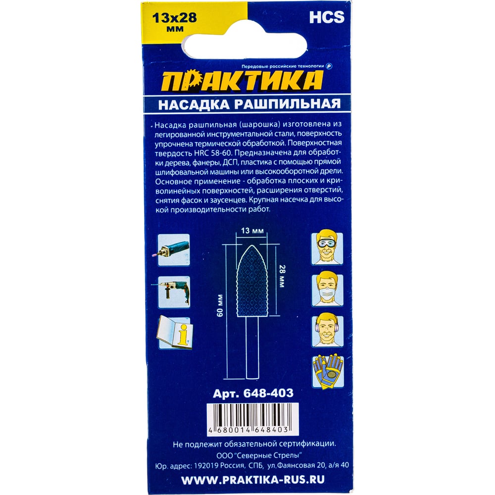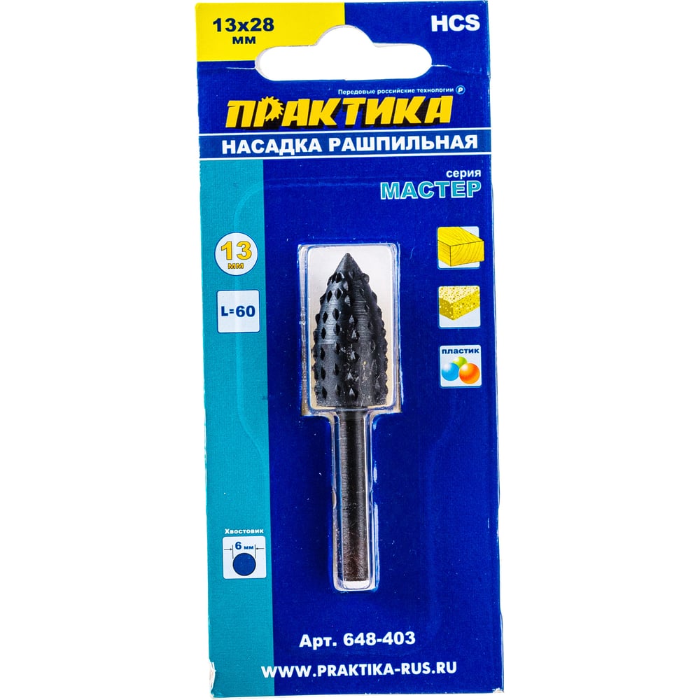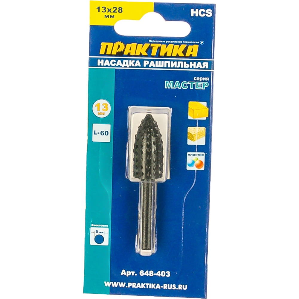 Шарошка стальная параболическая удлиненная по дереву (13х28 мм) ПРАКТИКА 648-403