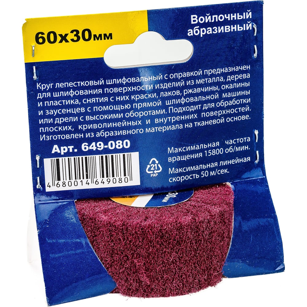 Круг лепестковый войлочный с оправкой (60х30 мм) ПРАКТИКА 649-080